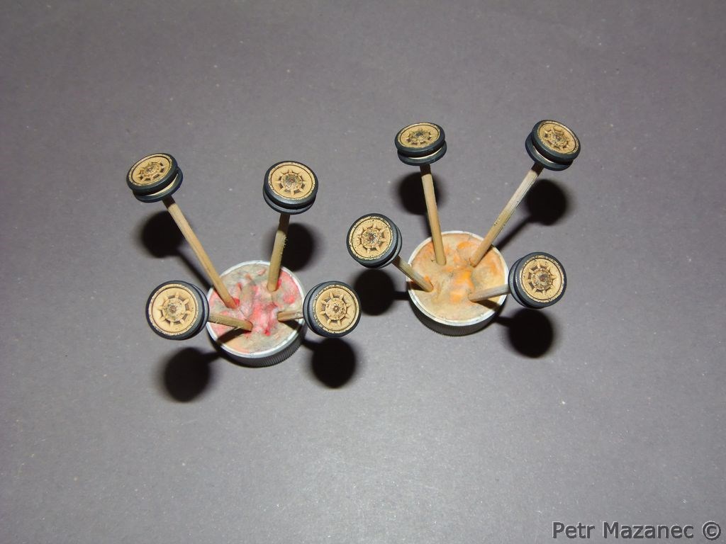 Od pátku jsem si hrál s kolama na Mobelwagena, natřel obruče, udělal odřeniny a hodil wash. Teď to nechám pár dní na pokoji a začnu se špínou a blátem...