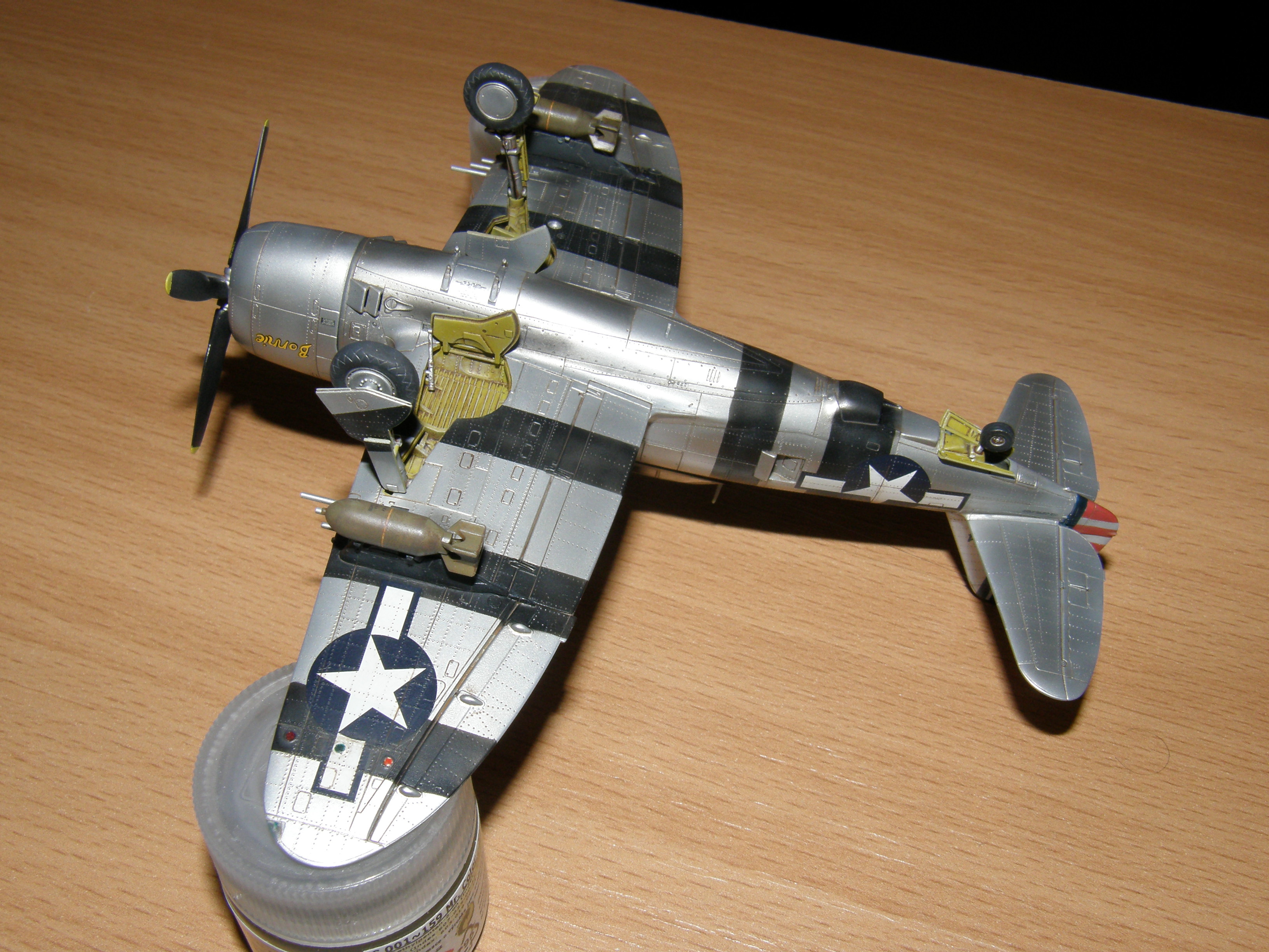 Mám doděláno.Jak jsem psal už několikrát,Tamka se staví sama.....pohodová stavba klik-klak.Na tomhle Jugu létal Maj.William "Bill" Dunham,velitel 460 FS/348 FG 5AF,Leyte, Filipíny konec roku 1944.