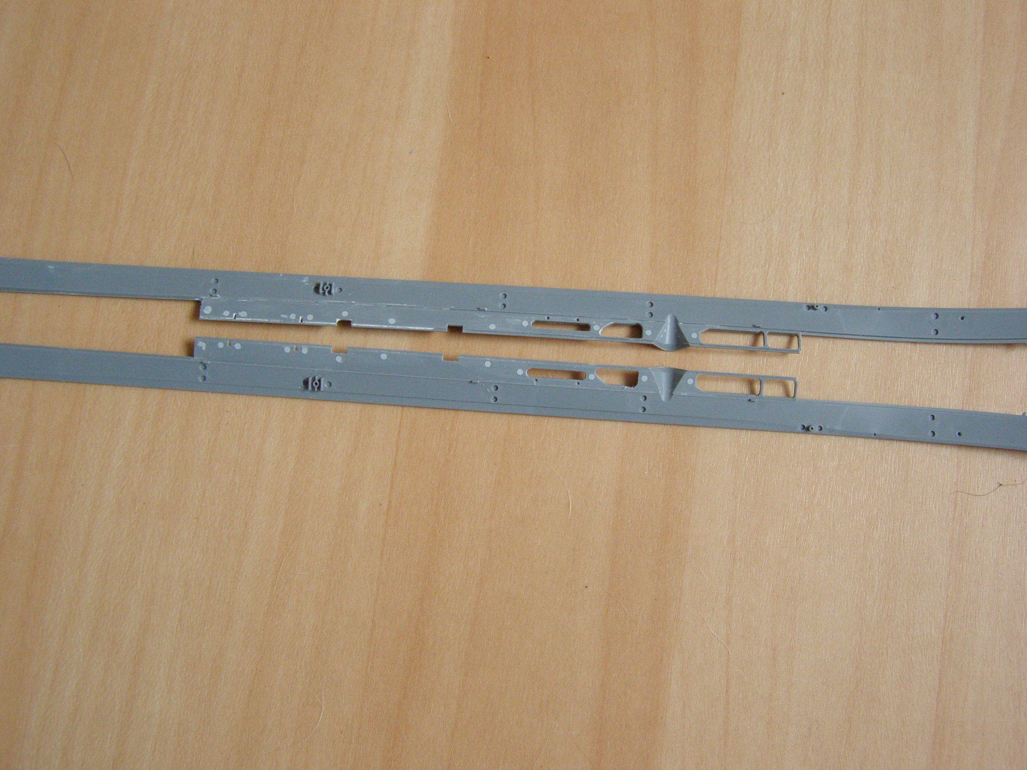 Jelikož jsem momentálně bez kompresoru a další letadlo se mi rozdělávat nechce, pustil jsem se polehounku do křižníku a zlikvidoval stopy po vyrážečích, kde by mohly být viditelné.