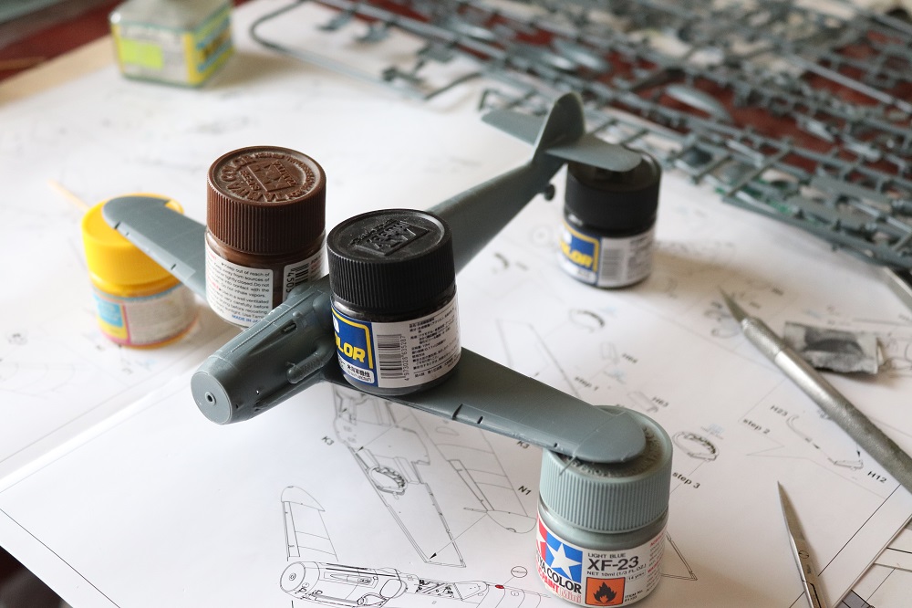 Po nějaké době zase update. 8-) Odstíny Gunze RLM74/75 a Tamiya RLM76 a RLM04(namíchaná)