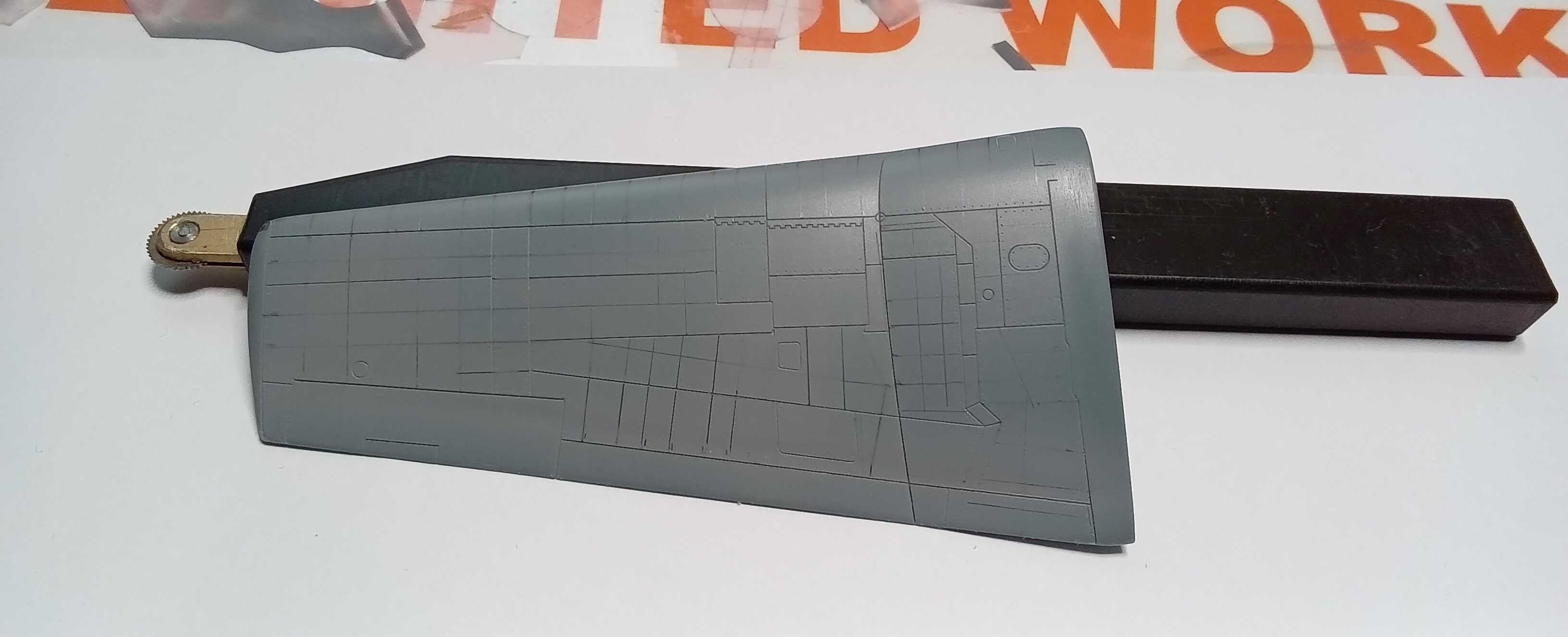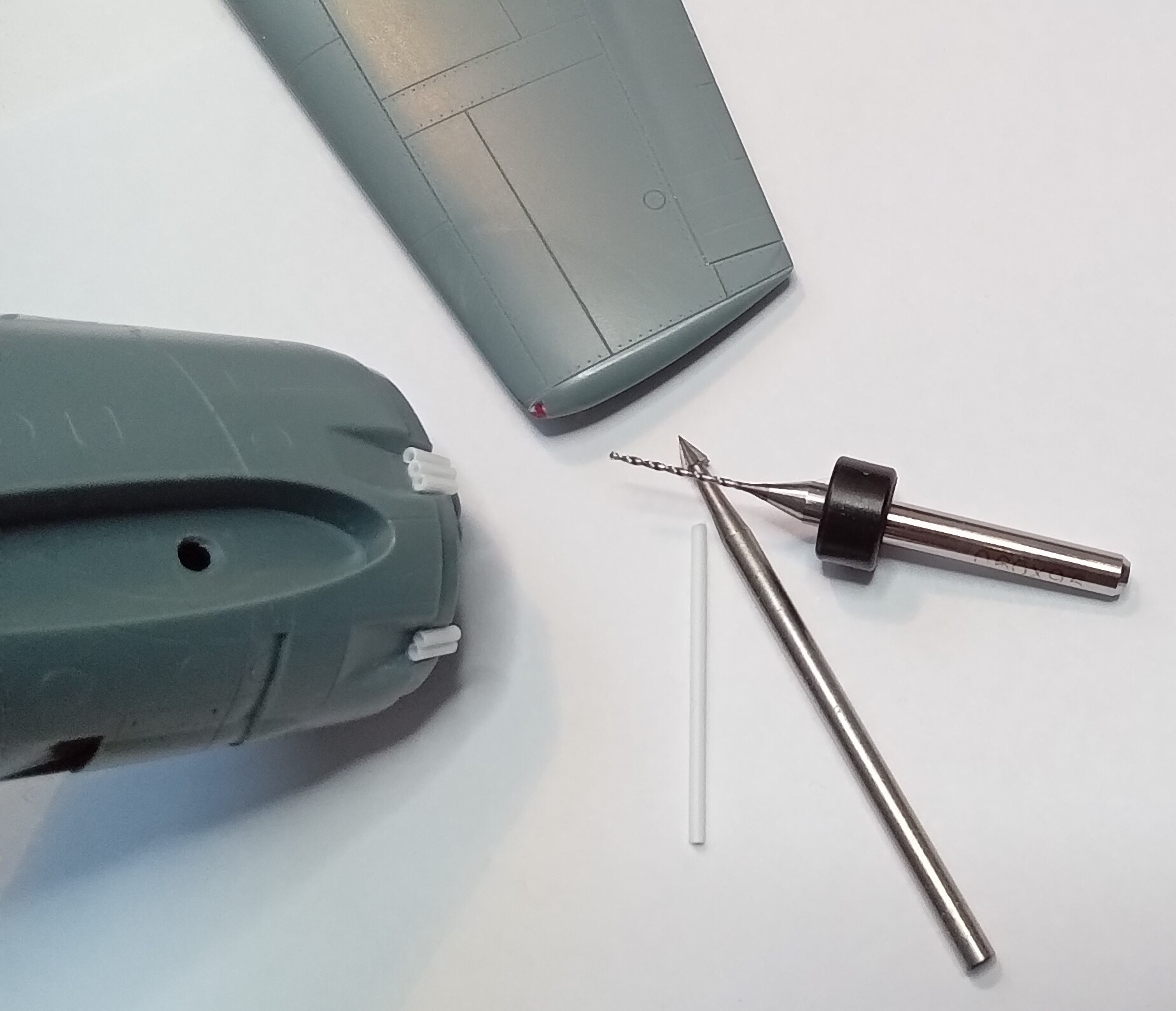 Člověk si nemá nic plánovat (a že jsem pár pětiletek zažil). 4 dny volna, říkal jsem si, jak s modely pohnu. No, alespoň má tchýně položenou betonovou dlažbu na dvoře před garáží. Takže se propadám do skluzu a nyní pokračuji na věcech, které jsem měl mít dávno hotové. Slepené díly jsou v surfu a konečně začínám předkreslovat nýtování. Na akci v Jihlavě jsem koupil nové nýtovací kolečko 3Detail, tak jej alespoň Lubošovi prubnu. Z 1 mm kulatiny Evergreen, navrtané 0,6 vrtákem, zhotovené nové výfuky. Dělat jich 20 kousků je fakt požitek... Průhledné pozičky, na nádrž doplněný svár z plastové nitě, prostě spíše ztráta času než něco důležitého. Ale ten pocit, občas k nezaplacení...