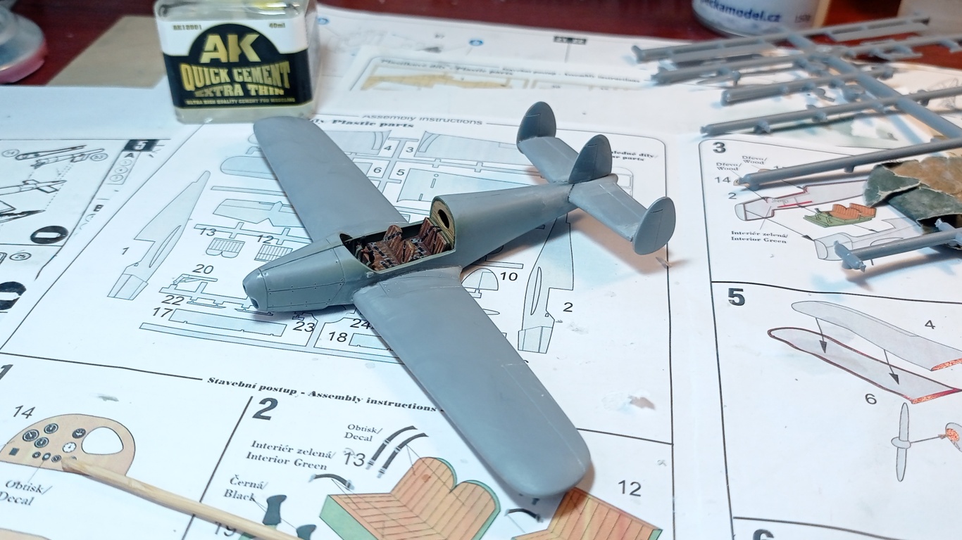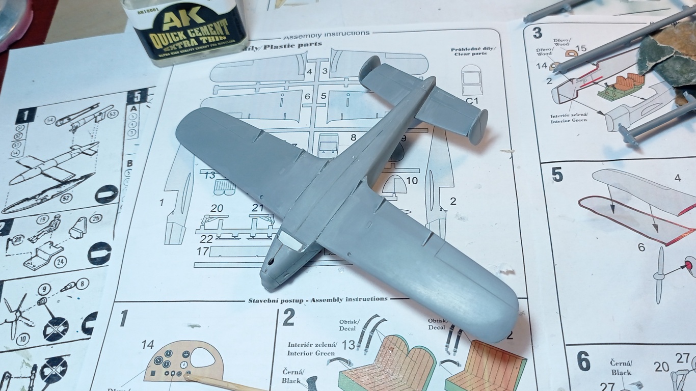 Pokračuju. Zatím nejvíc práce bylo s křídlama a se správnou polohou výškovky a směrovek.