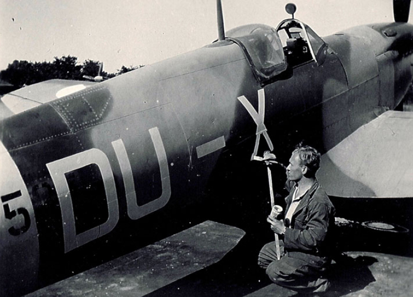 Stroj sériového čísla TE527 s motorem Merlin 66, vyrobený továrnou CBAF, byl převzat 39.MU 8. 6. 1945,1. 8. 1945 stroj obdržela 312. Sq., kde si je za svůj osobní stroj vybral velitel jednotky S/Ldr Hugo Hrbáček, který jej nechal označit kódovými písmeny DU-X. 13. 8. 1945 pak se strojem v rámci první vlny návratu československých zahraničních letů přistál na letišti Praha- Ruzyně. Pro přelet 312. Sq. Do Českých Budějovic v rámci poválečné reorganizace československého letectva.