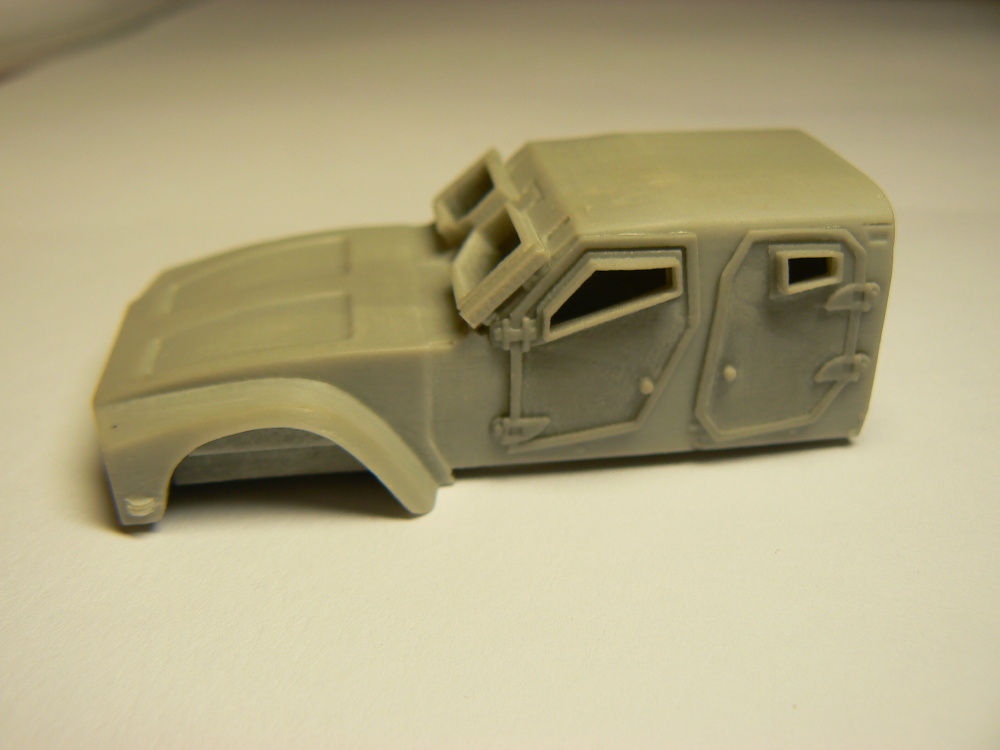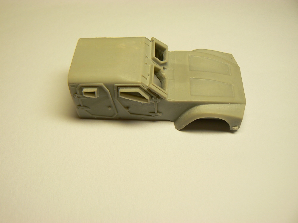 Resinový model zakoupený na e-bay, žádný zázrak,doufám že max. do dvou let bude od někoho jiného v plastu. Interiér chybí, jsou tam pouze dvě sedadla. Je fakt že dovnitř není vůbec vidět. Zatím začisťuju díly a dal jsem dokupy kabinu. Dveře moc neseděly, musel jsem je z vnitřní strany hodně zbrousit a stejně padlo dost vteřiňáku na tmelení.
