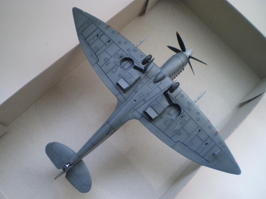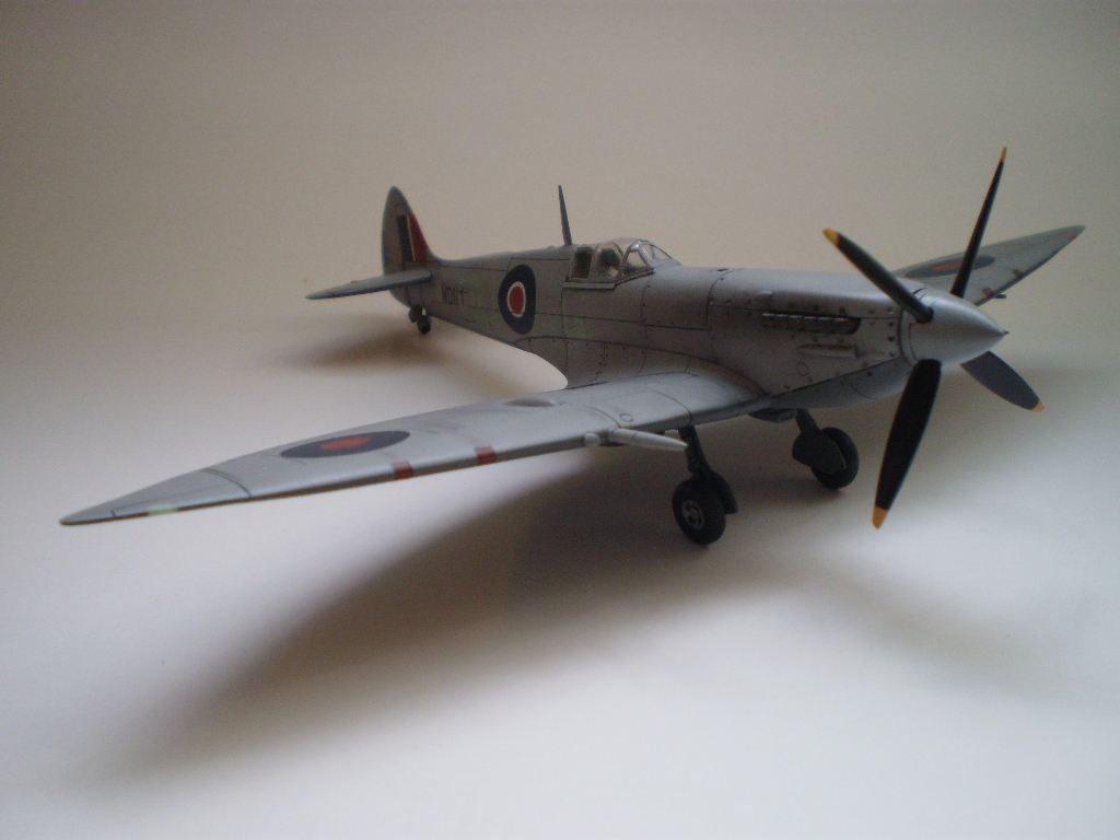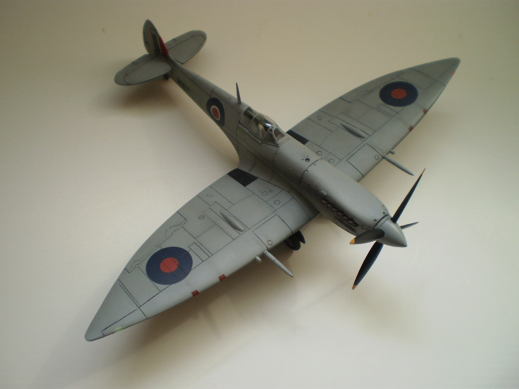 Tak a mám hotového ďalšieho spita prevážne z Airfixáckej Mk.IX. Niektoré súčiastky sú z viacnásobného kitu od Kovozávodov/Kopro/KP (nech im je zem ľahká). Z doplnkov som použil len sedačku a prekryt kabíny (pôvodne určený pre Hasegawu) od Pavla models, ostatné vlastná výroba. Koho zaujíma ako som sa dopracoval k tomuto výsledku nech si klikne do stavieb.