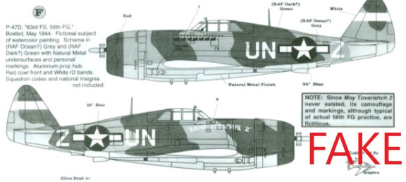Ne, to jenom jsem psal, že mám obtisky na Razorbacka s podobnou kamufláží co se používala u 56. FG velitele Huba Zemkeho . Jde o to, že Aeromaster(a další výrobci) to vydává za reálnou kamufláž i popiskem a on tuhle mašinu nikdy neměl a ani neexistovala. Hubert Zemke lítal na P-47D s podobnou kamufláží, ale to byla verze Bubbletop jako má David s názvem Oregons Brittania, což byl letoun koupený za válečné úpisy. Byl to poslední P-47D se kterým Zemke létal, než odešel k 479. FG na P-38J a P-51D. Na konci války ještě létal P-47M ve speciálním markingu. David to má dobře, já to psal jenom jako zajímavost. To se ve mě ozval ten historický nerd.