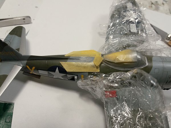 V poslední době je to trochu hektické. Ale po večerech se snažím doklepnout tu P-47. Už se zdálo, že mám vyhráno, ale bohužel, jak to bývá na poslední chvíli jsem objevil fail jak prase. Tím je absolutně nevydařený konverzní kýl se SOP od QB. Kýlová plocha je moc dlouhá a anténní sloupek vychází moc vepředu. (Nešel by vysunout překryt). Normálně bych to nechal, ale uvědomil jsem si, že jakmile to bude stát vedle ostatních P-47 ve vitríně, bude mi to vadit. (I na Academce jsem posouval sloupek do správné polohy).