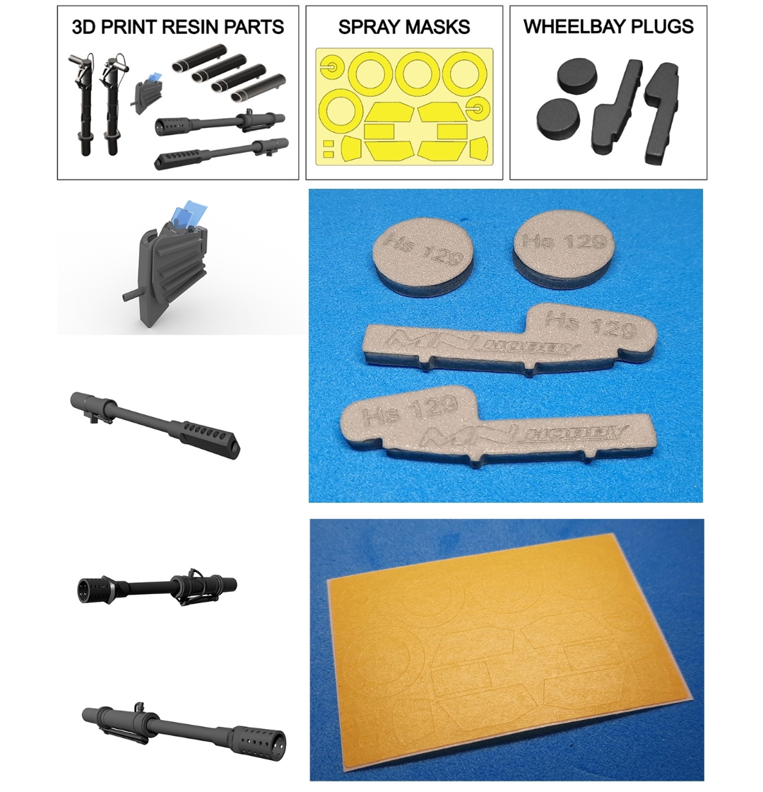 Jinak MN modelář krom L-29 Delfín ve spolupráci AMK a AZ/KP vydali nový přebal Henschela Hs-129 ve verzi B-2. Je to stejně jako B-3 ve 1/48 a výlisky Hasegawa doplněný o věci. Kamufláže zimní a pouštní. Kanony MK-101 a MK-103.