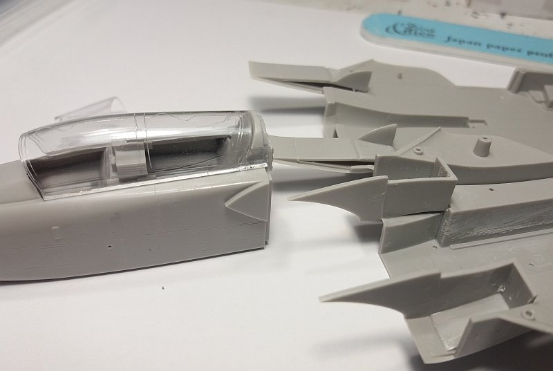 Jak vidíte, ten model potřebuje ve všech směrech vylepšit. Rytí je velejemné a poplatné době vzniku, vcelku složité sestavení vstupních kanálů k motoru končí stěnou. Trysky nejsou nic extra... no abych to shrnul, bude z toho ten vitríňáček, ale ještě nevím do které řady.