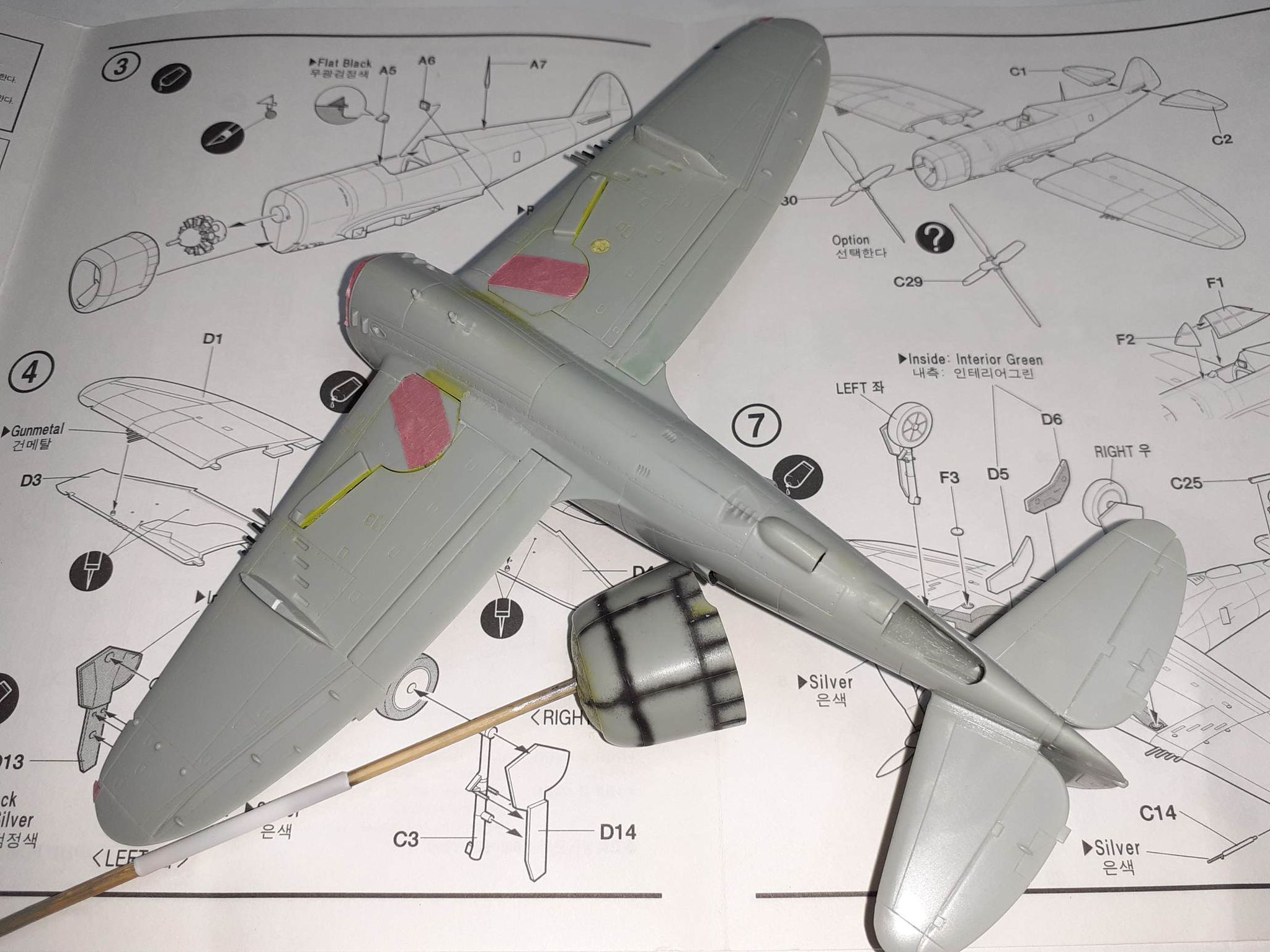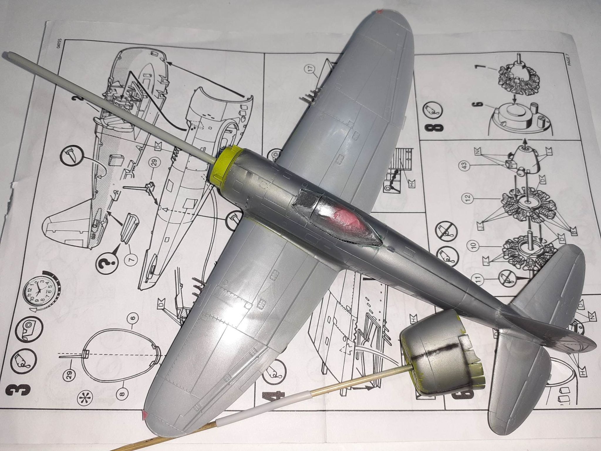 Krídla zlepené. Až to poriadne preschne odrežem hlavne guľometov, vyvŕtam dierky a nahradím umelohmotné hlavne hlavňami z injekčných ihiel.