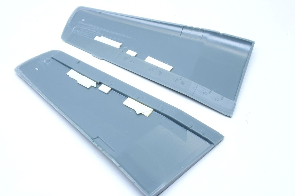Křídla u F6F-3, tak jak je má Eduard odpovídají variantě F6F-3. Pravé křídlo zcela správně a na levém je ta zmiňovaná přebývající linka.