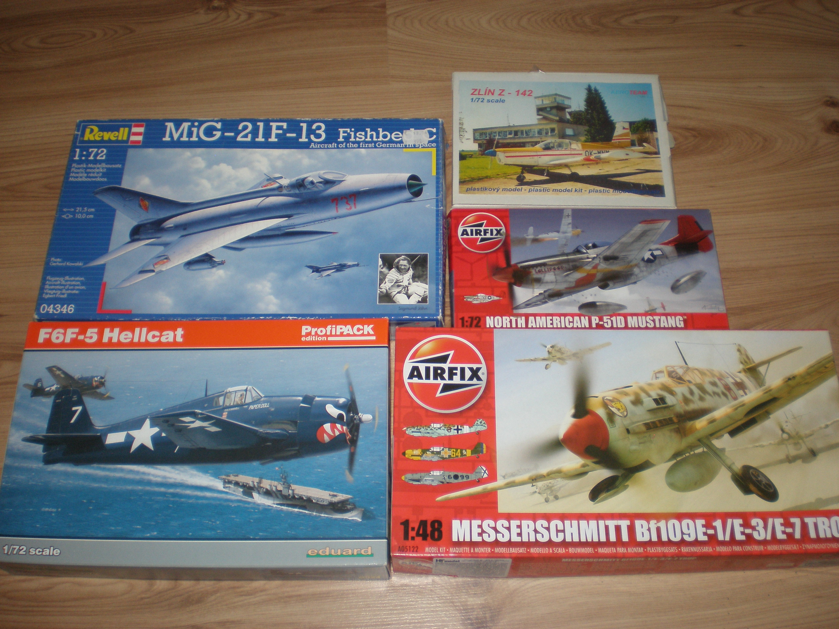 Postavené modely: Grumann F6F-3 (1/72, Academy), Messerschmitt Bf 109 G-6/R-6/Trop (1/72, Italeri), Messerschmitt Me 163 (1/72, Academy)