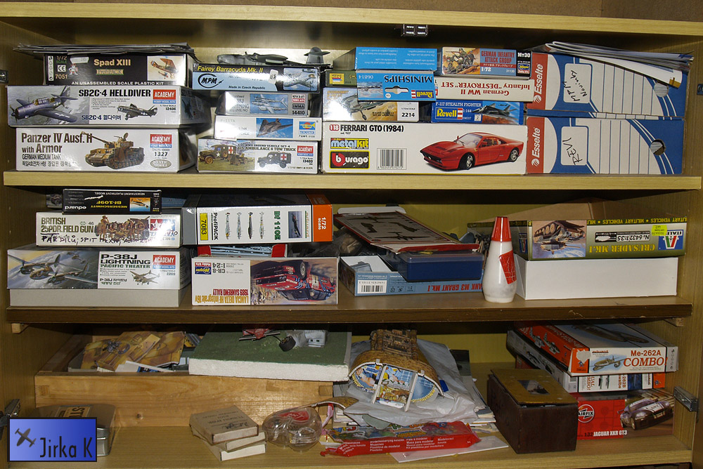 Já striktně dodržuju pravidlo jednoho, maximálně dvou rozestavěných modelů. Dorazím a teprv začnu druhej. Ještě tak do doby cca před šesti lety jsem ani nic nekupoval do zásoby. Koupil jsem model, postavil a pak teprv kupoval další. Málo kdy jsem měl doma víc než jeden kus. Pak se to ale nějak zvrhlo