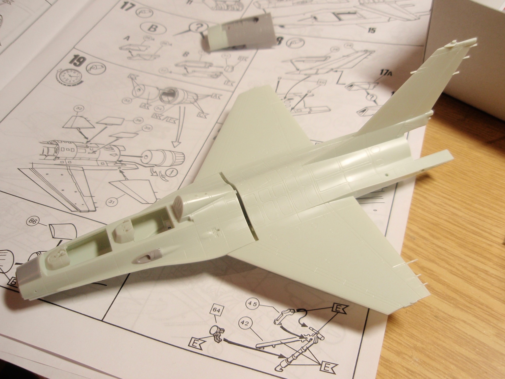 Přesněě:D NO nic dneska jsem zkoumal proč tam mám dva stejné kryty kokpitu ty blbci mi dali dva stejné kusy na verzi dvojsedadla. Takže to druhé stejné mělo být na jednosedadlo ale to já bohužel v tom balení nenašel:(:( takže budu muset dělat dvojsedadlo:(a to jsem nechtěl:(