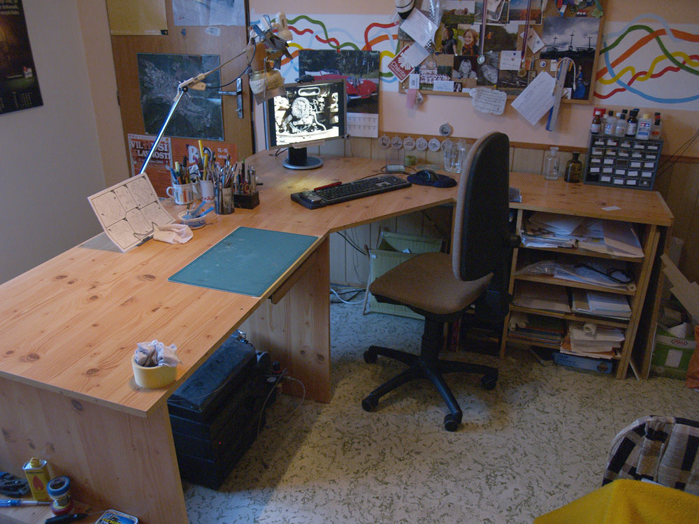 Brloh je to fantastický! Relaxační místnůstka - no, mám to jako pracovnu, kde dělám i do školy a semtam i na nějakém projekčním melouchu... Rozkládací gauč je u nás téměř nutností, vzhledem k občasnému nedostatku míst k uložení hostů, ale hodí se i na klimbnutí během renderování nebo když schne lak