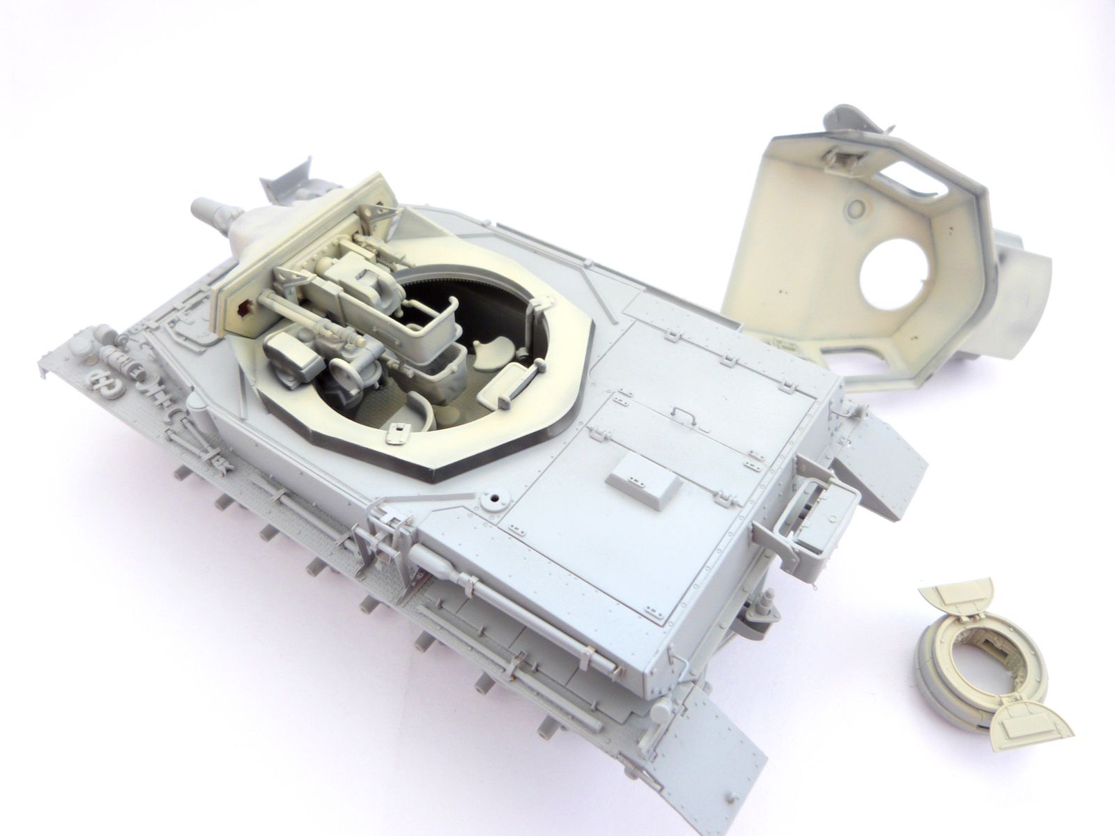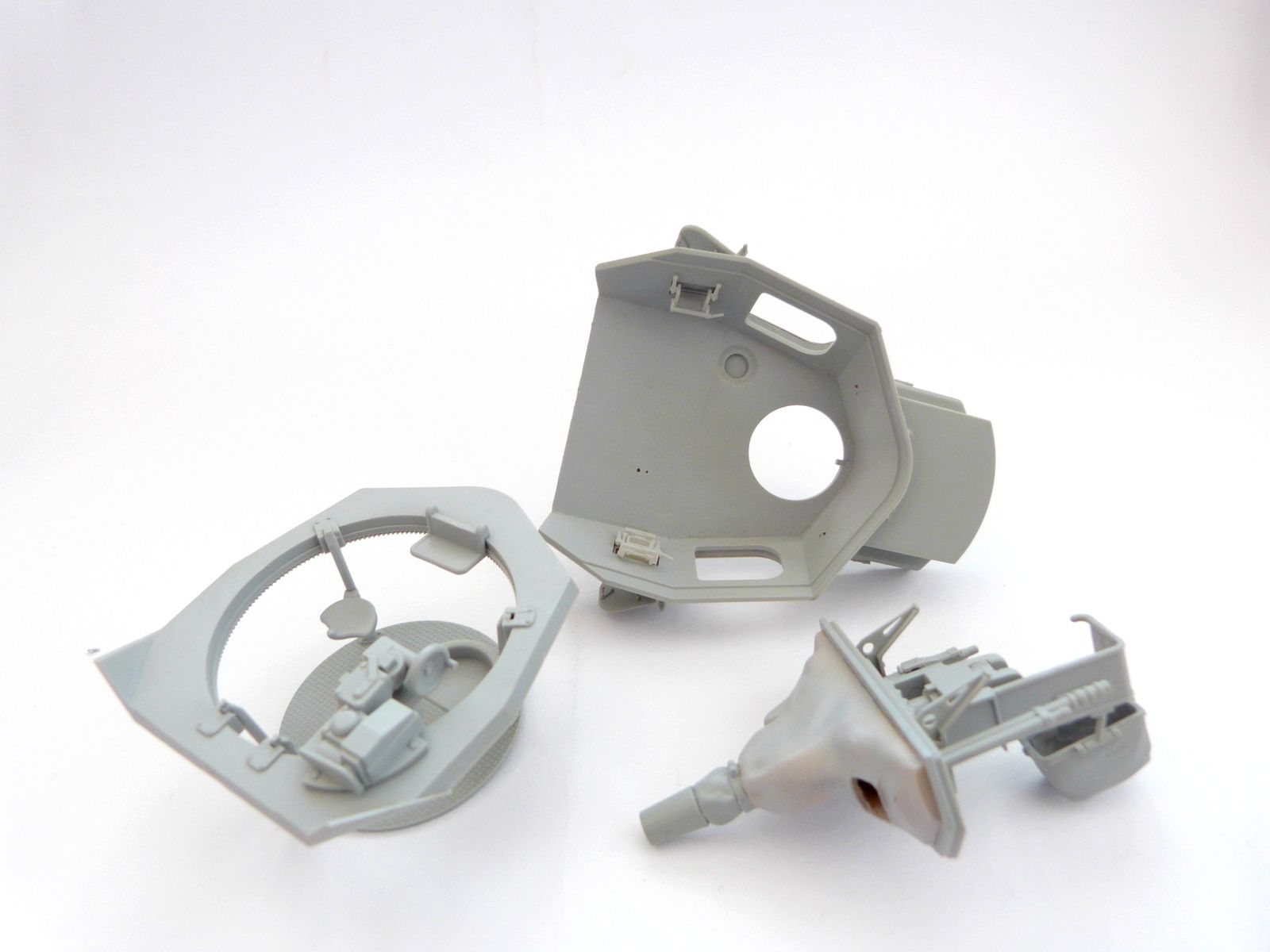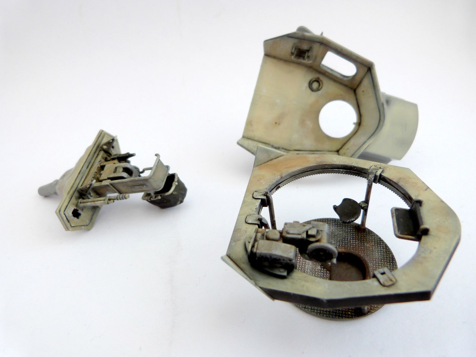 Dolepil jsem poklopy a dal interiér věže do surfu a ačkoliv mě zbylo něco v pistoli, tak jsem nastříkal místama i korbu. Potom předstínování a na to bílá s kapkou pískové.