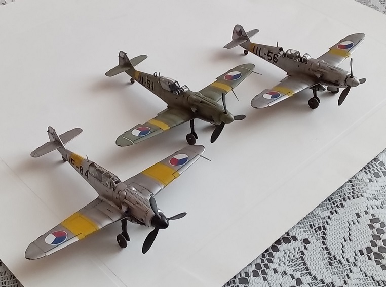 Uklízím stůl na rozjezd staveb skupinovek. UL-51 po opravě dekálů přesouvám za sklo. Nyní mi zbývá jen UF-84 (široké pruhy na křídlech a na trupu poloviční) a měl bych cvičné S/CS-199 se žlutými doplňky hotové. Ale po dekálovém debaklu si musím dát od Edu chvilku pokoj ...
