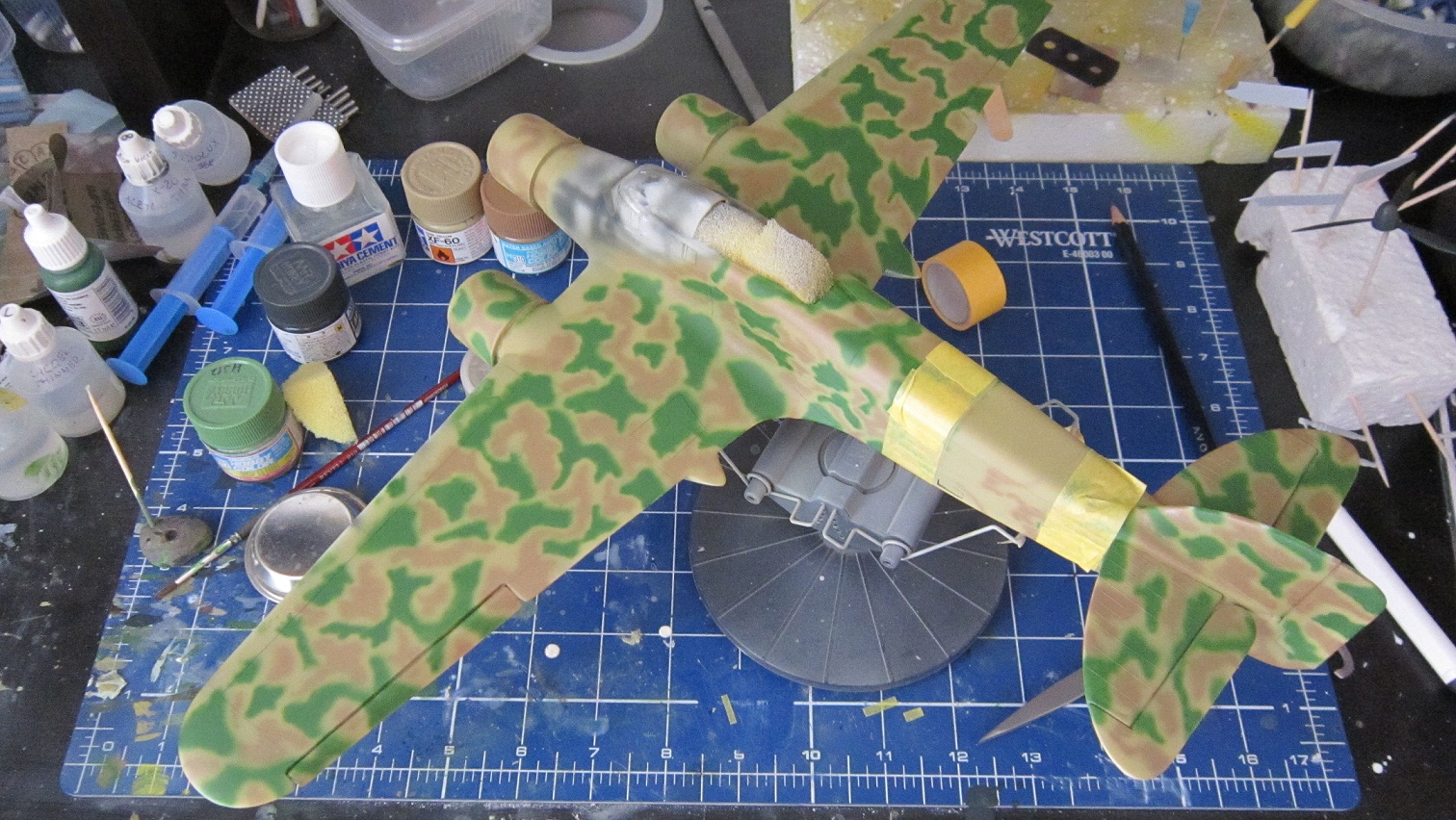 tak co? muzu to zatim takhle nechat? jeste musim dostriknout zelenou na motoru, bilou na trupu a sedivou a zakladni nastrik bude hotovy.