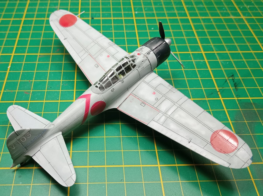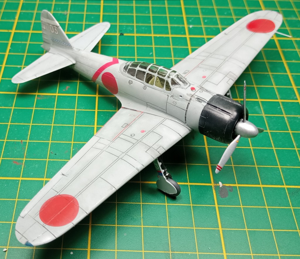 Tohle Rufe bylo původně A6M2 model 21 vyrobeny u Nakajimy, pak jej předělali na Rufe, takže člověk musí jet podle pravidel zbarvení Nakajima.