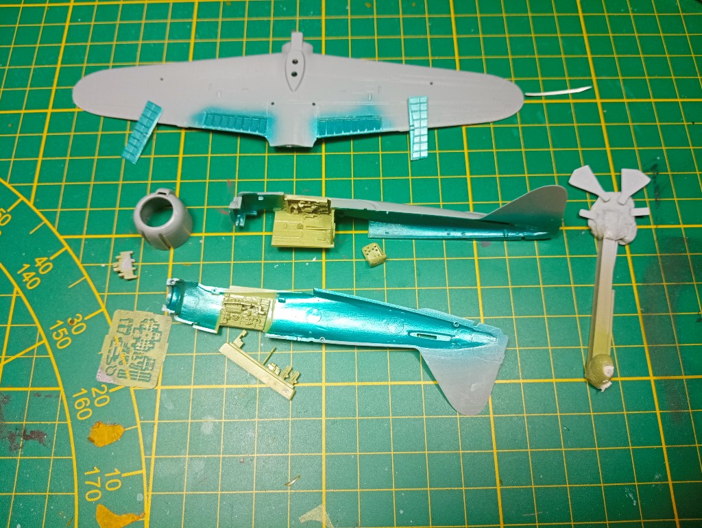 Dalším kouskem bude A6M2-N od Hasegawy v 1/72. Šachty jsou od CMK určené pro A6M5. Po drobné úpravě se použít dají.