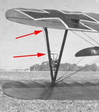 Jak jsem psal dříve, Althausův Albatros byl plný atypických prvků. Jedním znich byl jakýsi aparát zavěšený na pružinách v levé křídelní vzpěře, ze kterého vedly dvě trubičky (hadičky).