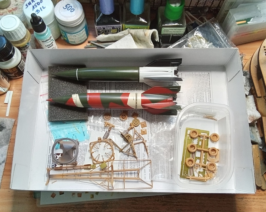 Ofiko je V2 velmi zajímavá. První sériově vyráběná a použitá balistická rachejtle na světě, první zařízení, které se dostalo do vesmíru a první, které, tedy až po válce v roce 1946 v USA, pořídilo první fotografie Země z vesmíru. Vývoj zahájen v třicátých letech min. století, první prototyp při motorové zkoušce explodoval (březen 1942), úspěšný start až 4. prototyp. Nálet na Peenemünde je dostatečně znám. Zformovány 3 dělostřelecké pluky, které v období 8.9.1944 - 27.3.1945 odpálily 3 165 raket. Musím přiznat, že toto celkové číslo mne dost překvapilo... Cíle - Londýn, Norwitch, Paříž, Lille, belgická města a s postupem spojenců i např. Remagen. Druhé překvápko pro mne bylo, že nejvíce raket V2 bylo odpáleno na Antverpy - 1610 ks. Obrana prakticky neexistovala, pouze spojenecké napadání dopravních sítí a např. velmi účinné se ukázaly britské dezinformace o dopadu raket, díky kterým se podařilo část raket nasměrovat mimo Londýn.