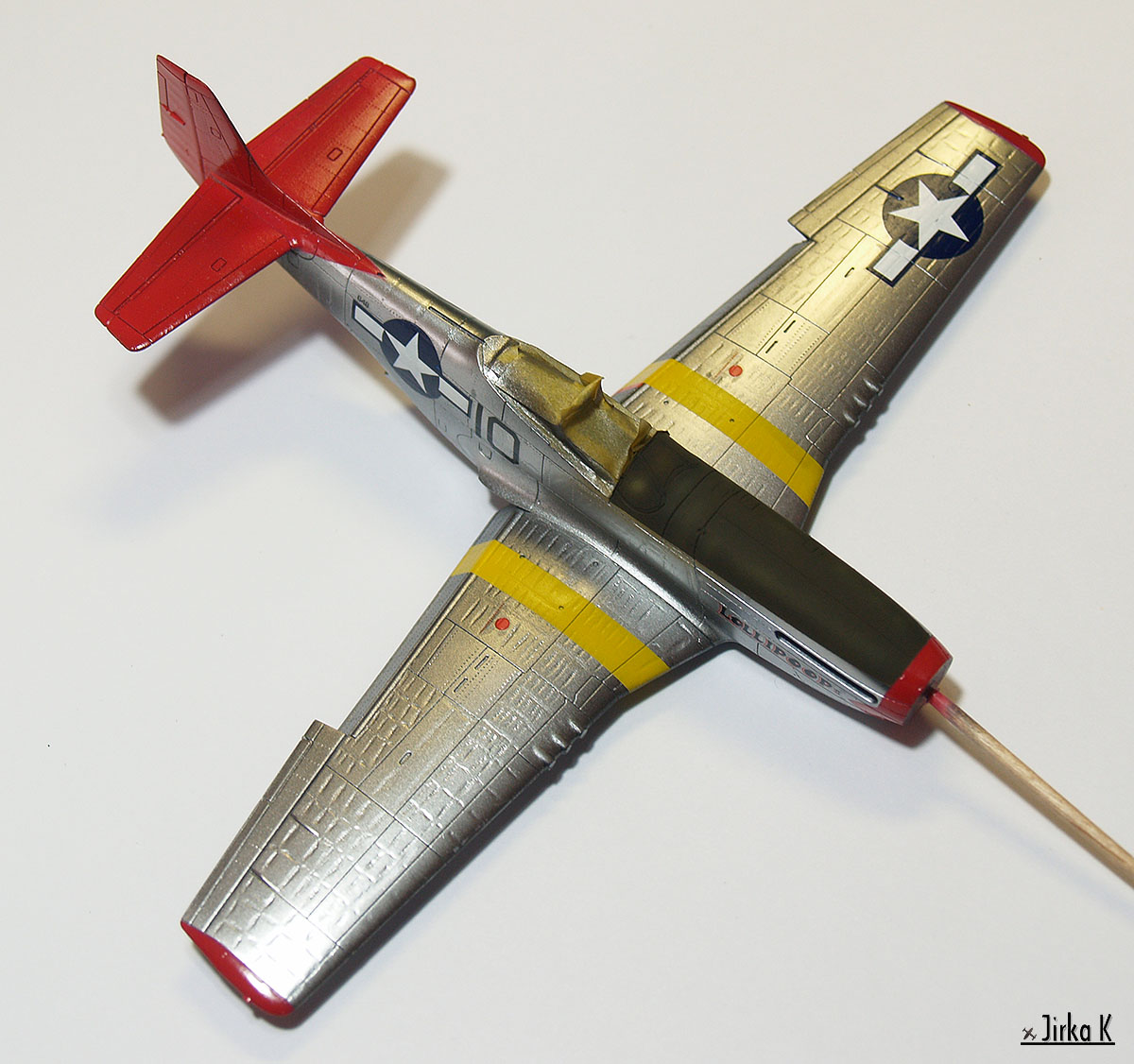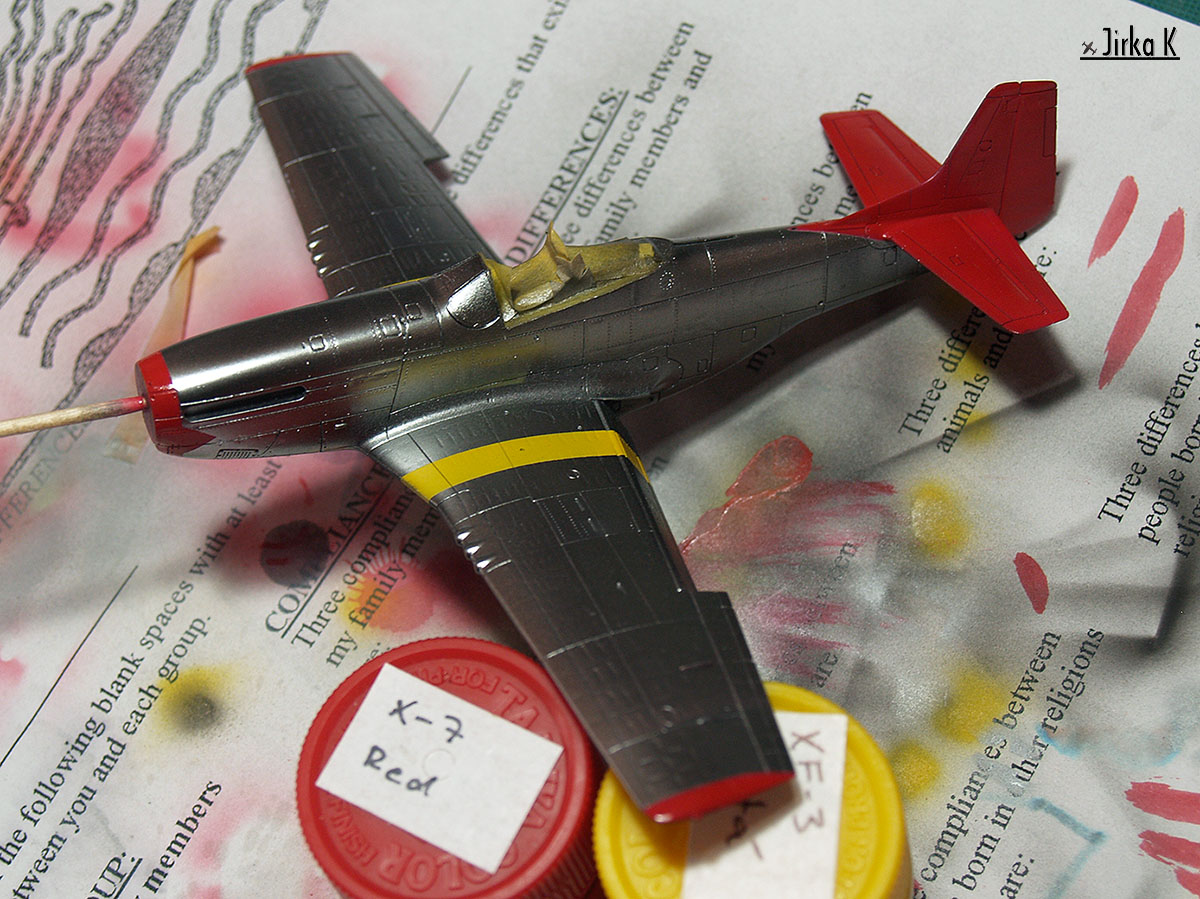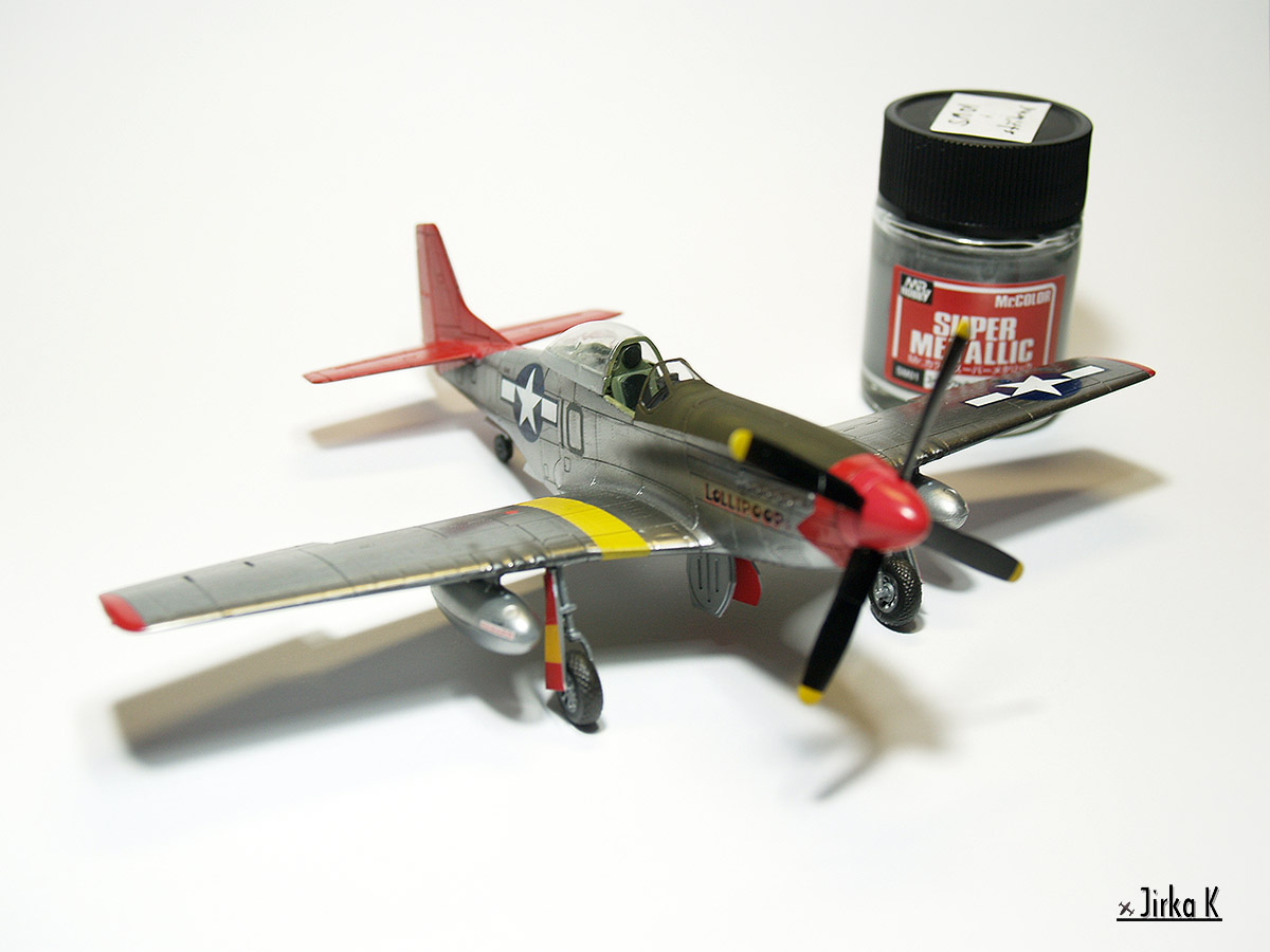 Tak, protože jsem nepoučitelný tragéd. Na to, abych dorazil Spitfiry mi chybí přenoska (kterou tuším, kde sehnat, ale ještě jsem se pro ni nevydal), Crusadera by asi stačilo začít barvit (podruhé), stejně jako odznakového Tomcata. Já si ale vyhrabal Mustanga a vyzkoušel si na dvaasedmě zaškrabávat pod NMF.