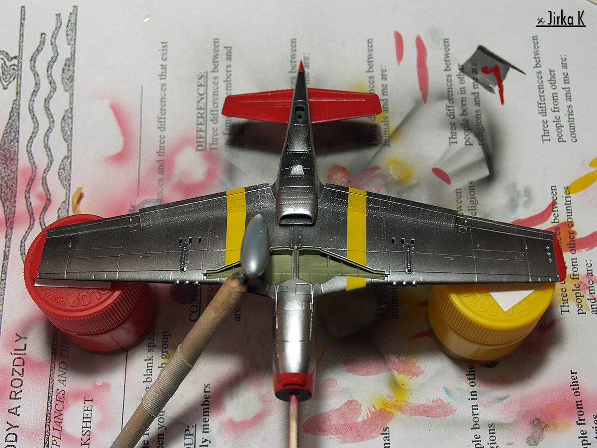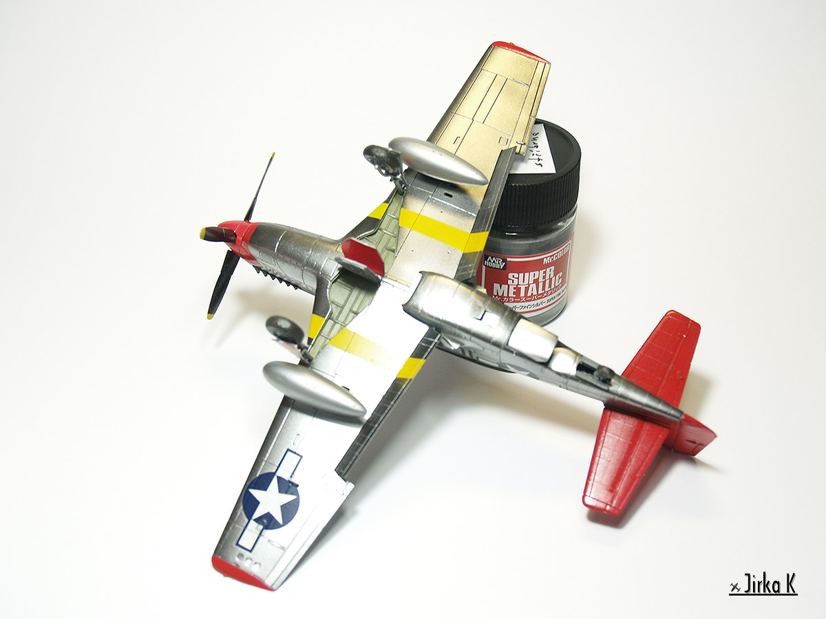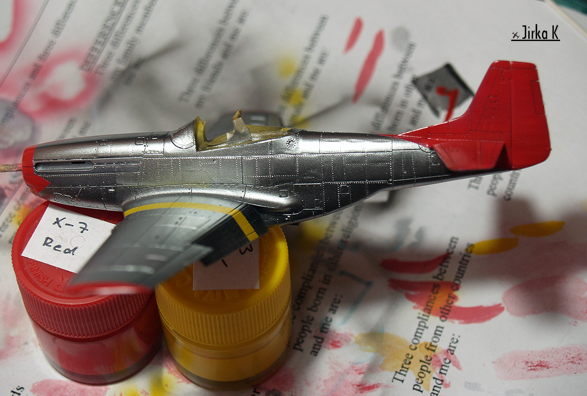 Tak, protože jsem nepoučitelný tragéd. Na to, abych dorazil Spitfiry mi chybí přenoska (kterou tuším, kde sehnat, ale ještě jsem se pro ni nevydal), Crusadera by asi stačilo začít barvit (podruhé), stejně jako odznakového Tomcata. Já si ale vyhrabal Mustanga a vyzkoušel si na dvaasedmě zaškrabávat pod NMF.