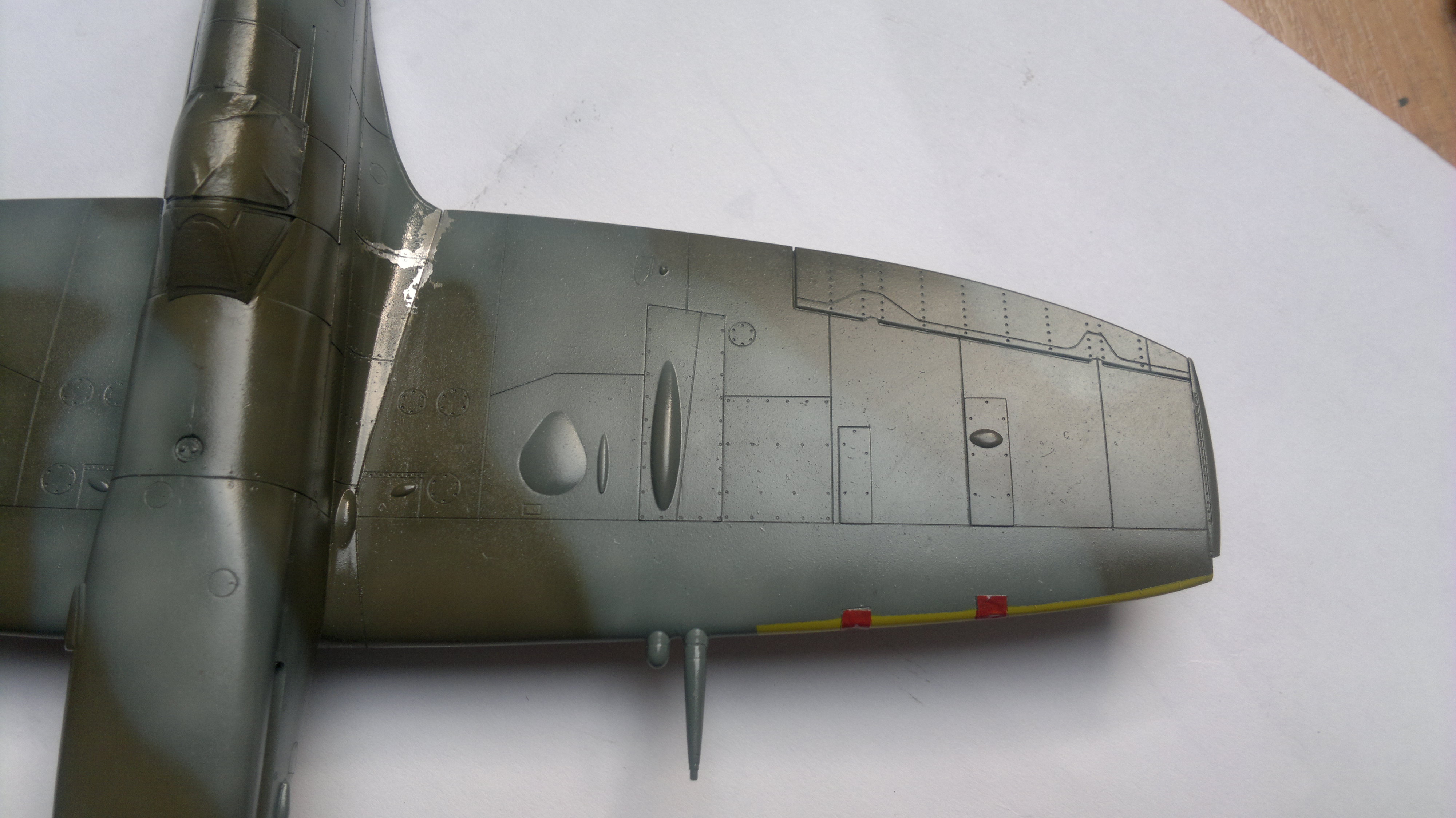 naběžky sice mám,v lesklem laku taky ale ty vole co ta propadlina po slepení polovin trupu na čumaku????? Vždyť ta tam přece předtím nebyla!!!!!