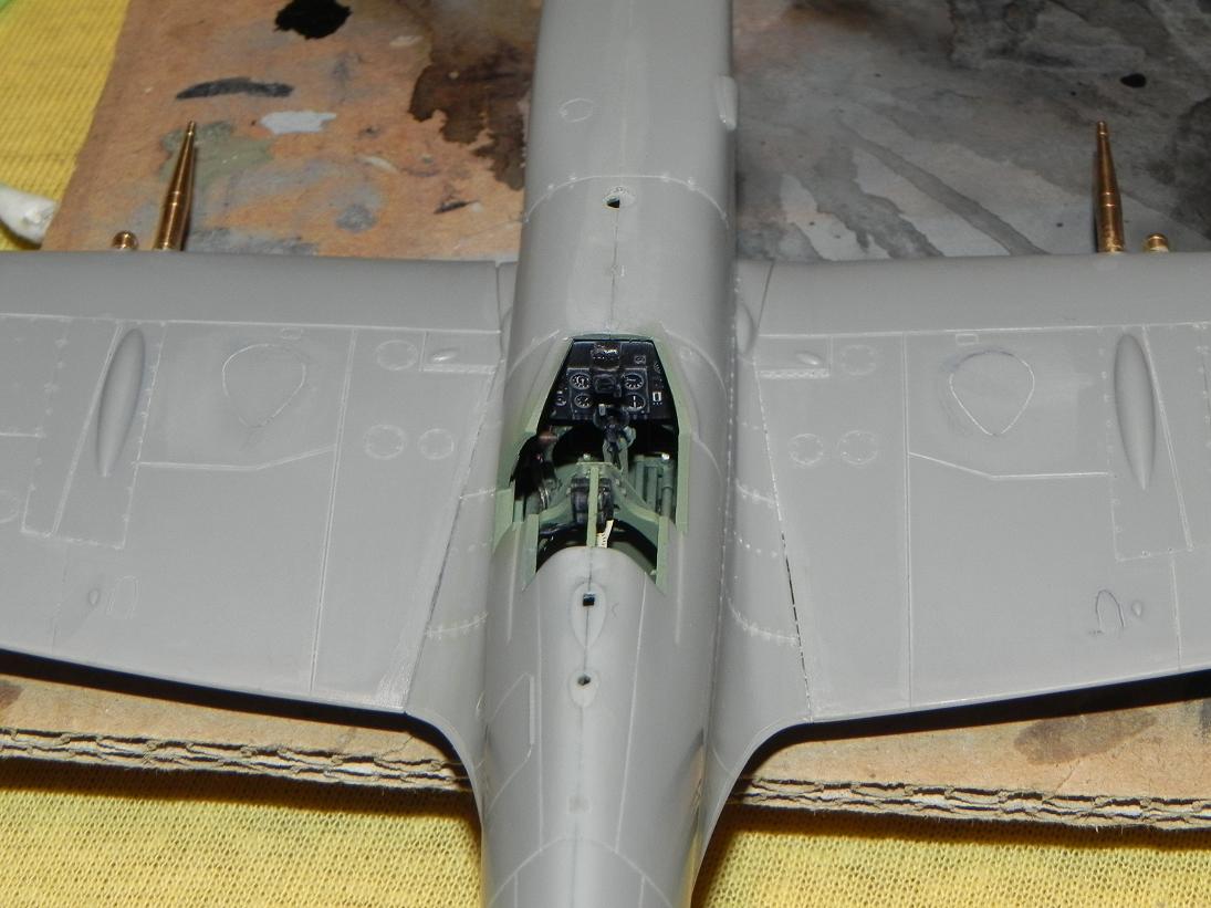 Takže restart: zatmelil jsem jednu nanýtovanou horní půlku křídla a pustil se do kokpitu.