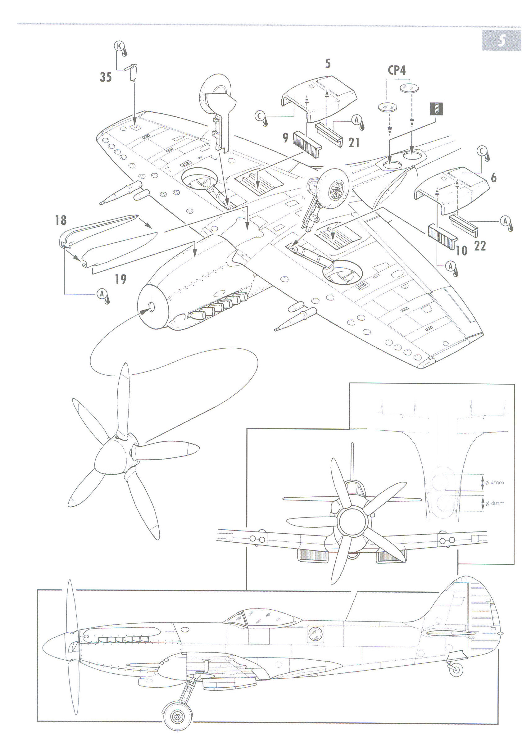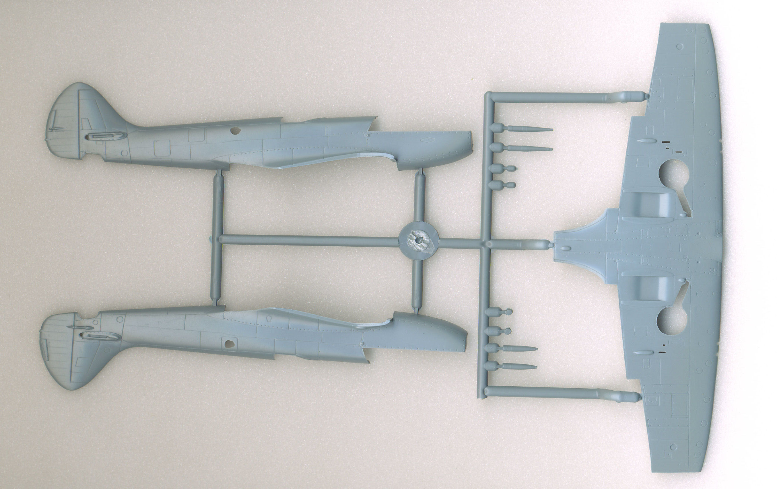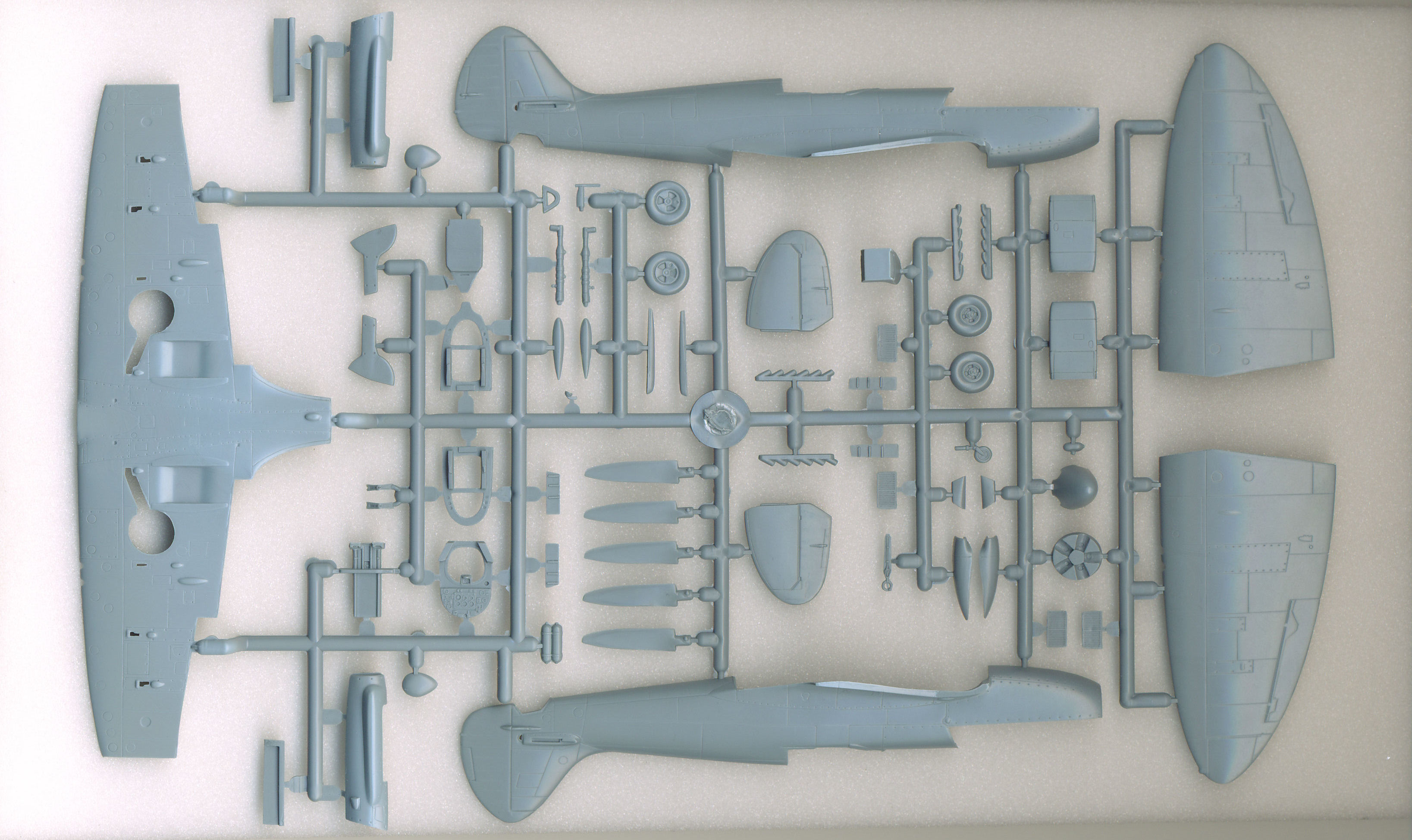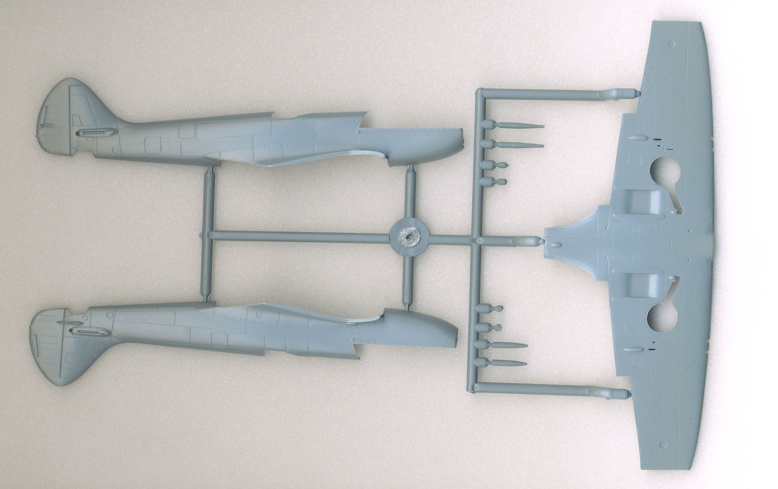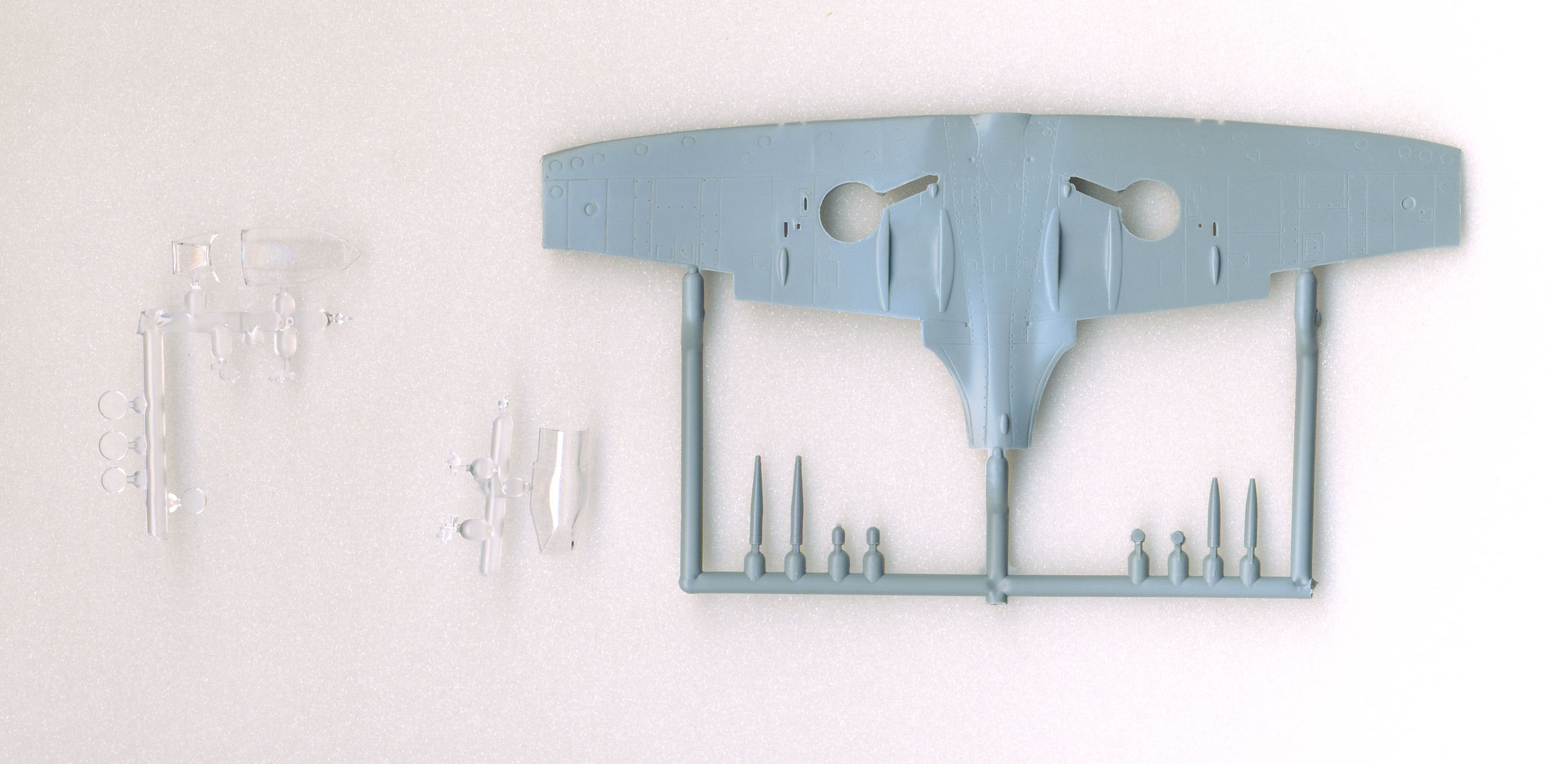 Všechny tři stavebnice obsahují základní rámeček s původním vysokým trupem a křídlem typu C, dalšími jsou rámeček s výzbrojí trupy a křídly a čiré díly podle verze letounu.