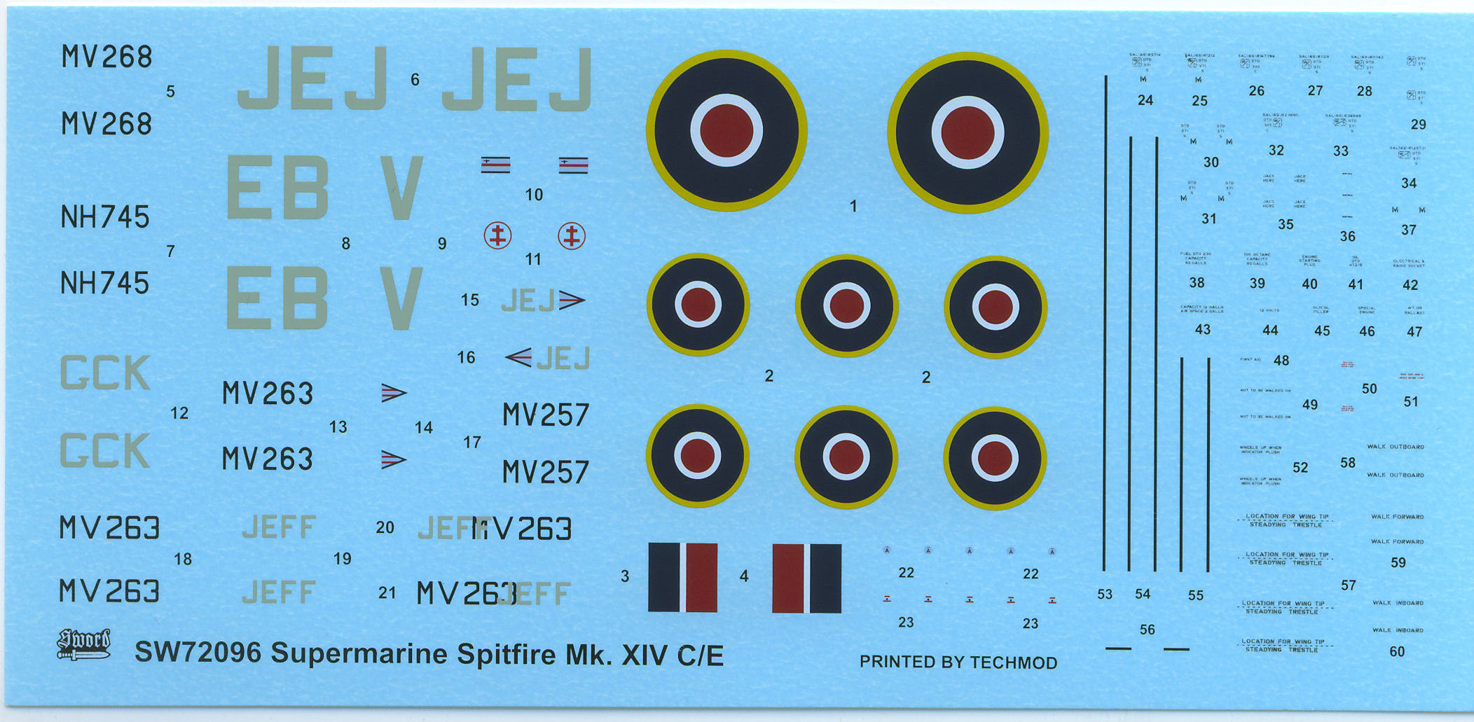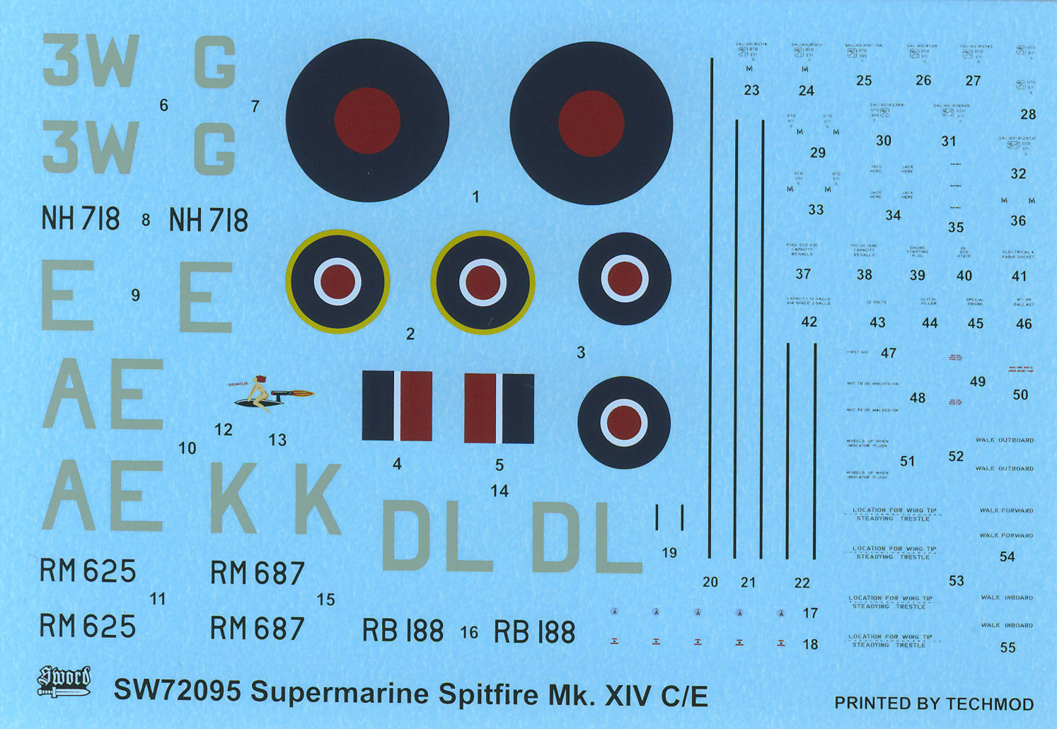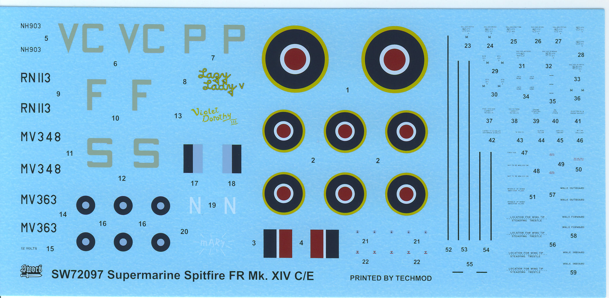 SW72097, Spitfire FR Mk.XIV E, průzkumák se sníženým trupem a kapkovitou kabinou, doplňující rámeček stejný jako u předchozího modelu, ale díly trupu nejsou zcela identické, navíc je i zasklení trupových kamer.