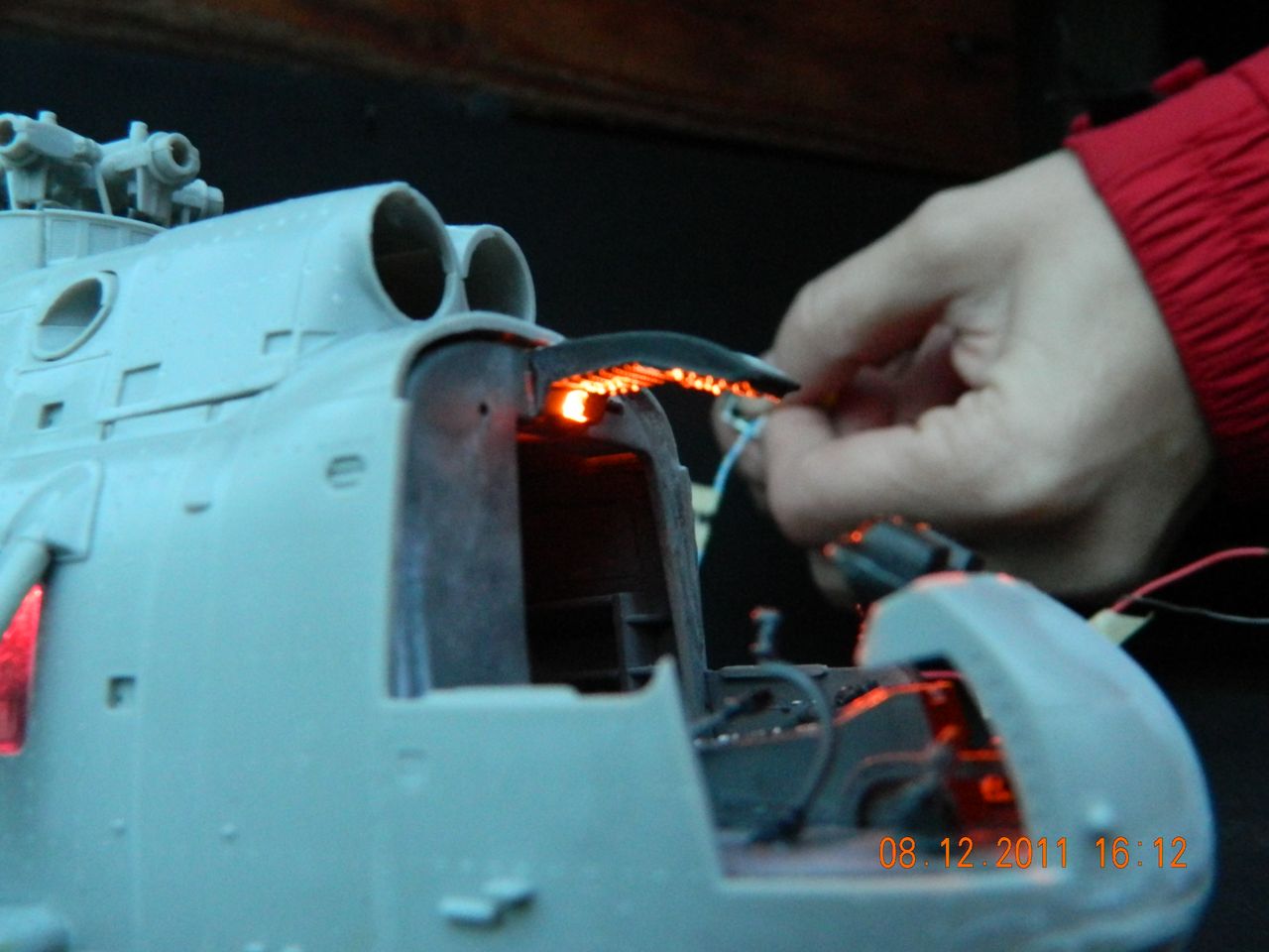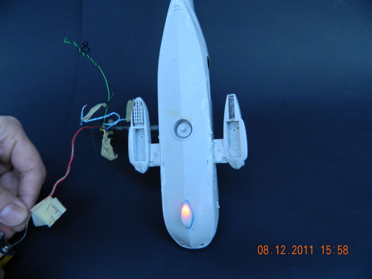 Dám sem teď radši pár fotek než to pokakám a zase mi shoří nějaká dioda. (už jsem třikrát předělával levou tu ,,bačkoru", protože jsem se splet a při hraní si s tím, jsem zapojil devíti voltovou baterku a červená šla do pryč.) Takže teď už se mi moc do něčeho řezat nechce. Teď budu mít dost práce s pvrchem, takže další postup až tak v létě :lol: