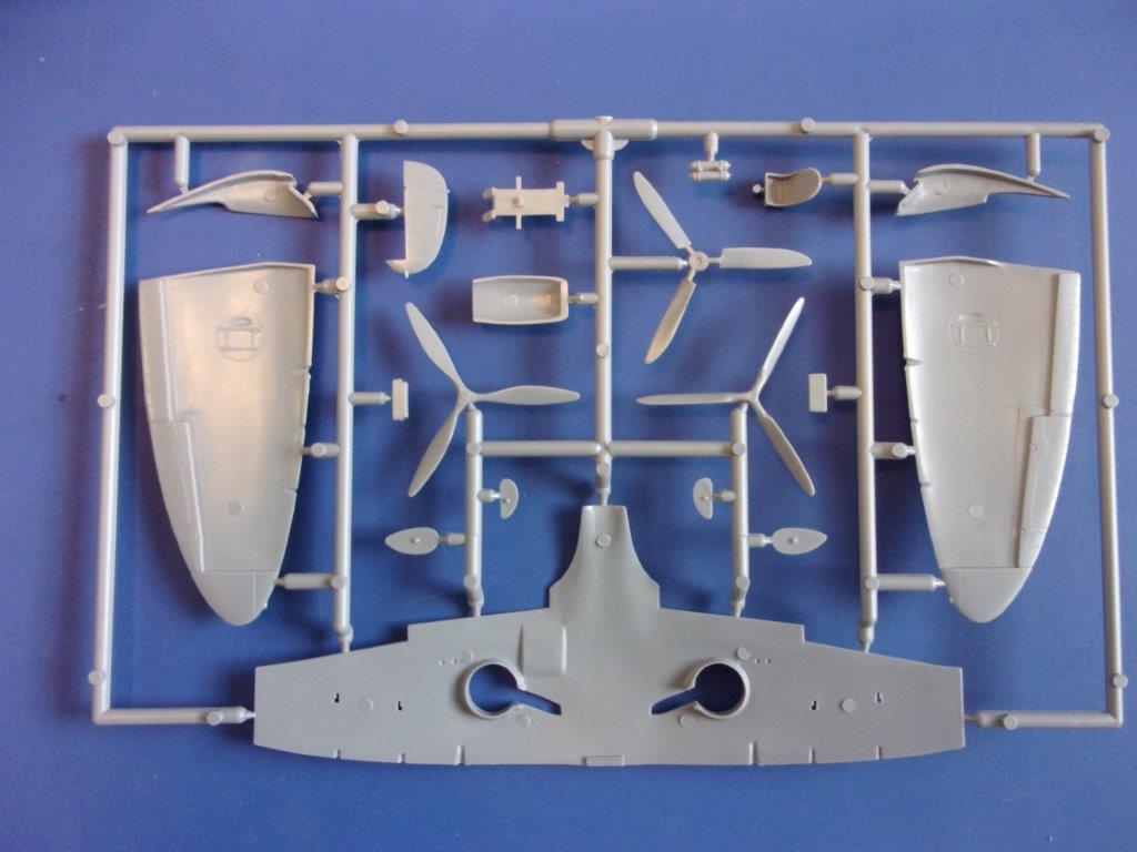 Jsou to ty novější výlisky co vyšly před asi 4 roky na multi Spitfiry Mk. Ib, IIb, Vb a Vc. Je to doplněné o nový rámeček s novým křídlem a díly na kulometnou verzi Mk.Ia a Mk.IIa, dvoulistá vrtule a nově Early kabinka.(pokud to takhle můžu napsat). Navíc je tam v rámečku ještě nádrž pro verzi Mk.II(LR), která vyjde později.