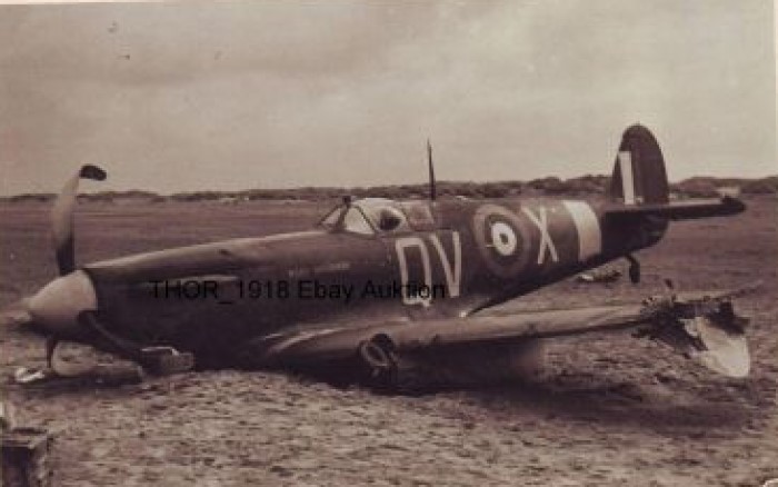 1. Spitfire Mk.Ia, DW-Q, 610. Squadrona, pilot F/O Albert Rupert John Medcalf (nezvěstný-zabit), sestřelen Bf-110 nad Dunkerque 27. května 1940.