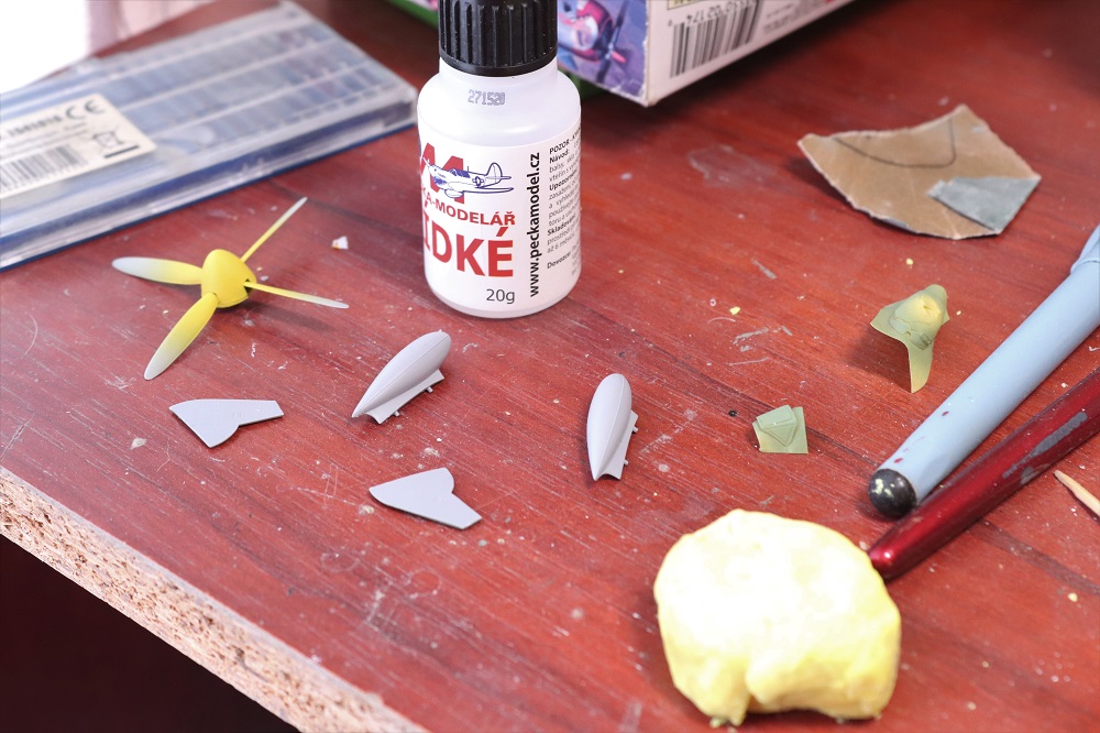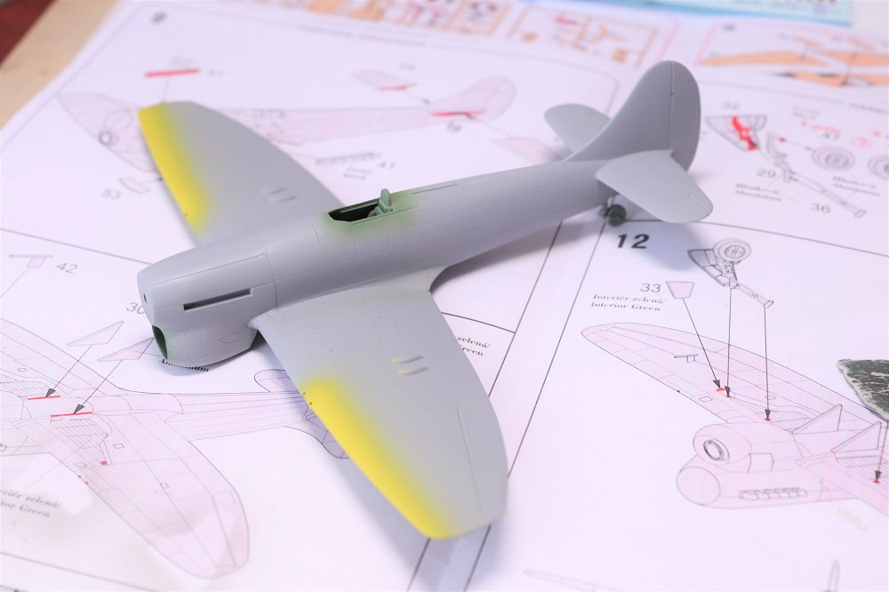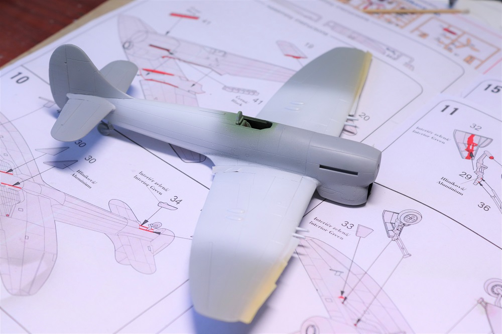 Začal jsem trochu s obavami včera večer, ale musím říct, že je to po Emilovi další dobře slepitelný model. Jsem zvědavý na ten podvozek. Ten bývá u Hawkerů vždycky za trest. Tmelil jsem pouze mezi trupem a křídlem a na předku trupu.