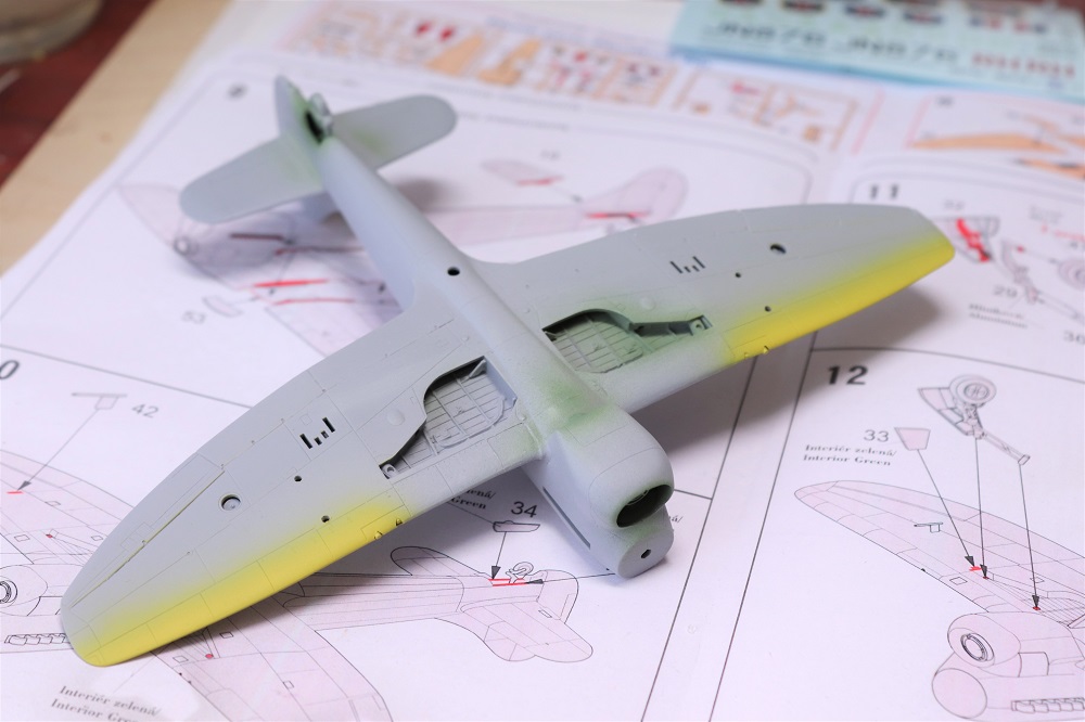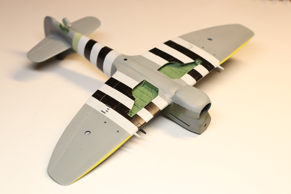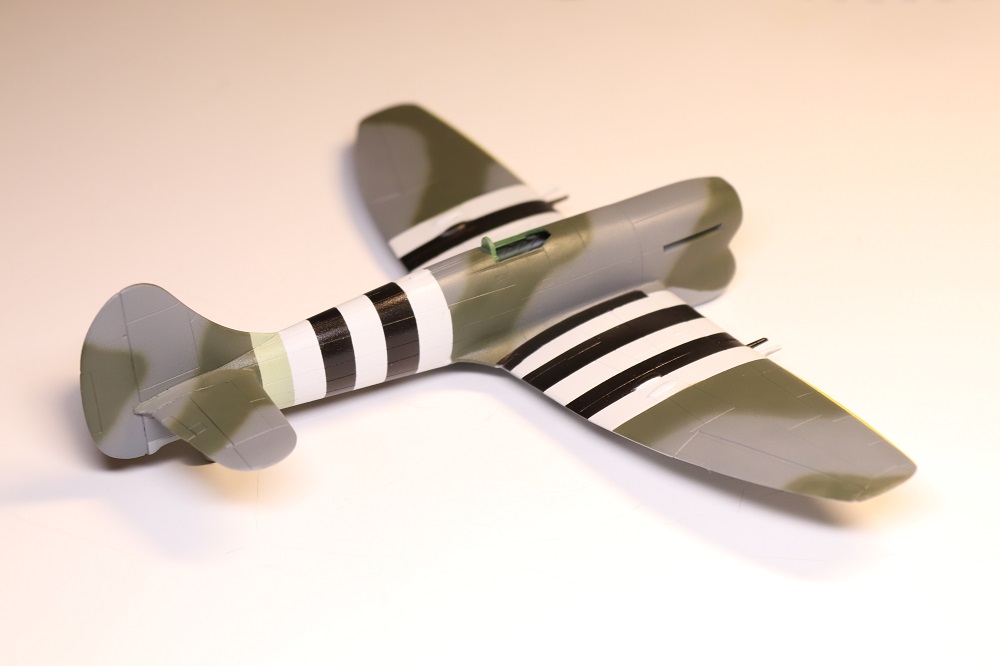 Kamufláž +/- hotová. Ty invazní pruhy jsem dělal podle krabičky. Nevím jestli to nemělo být trochu posunuté ke kenci křídel. Nebudu to radši zkoumat, když už to mám takhle.