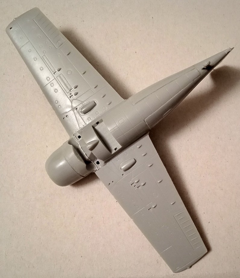 Tvarově to je asi nejslabší Wildcat od Hobby Bossu. Motor na sucho nasazen. Trup v kupě.