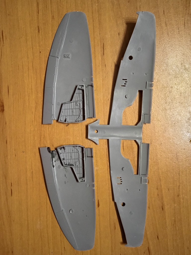 U Academky jsem vkládal tenký proužek plastu ze spodu trupu a za kabinou pilota, abych trup rozšířil a pasoval mi přechod trup vs.křídlo.