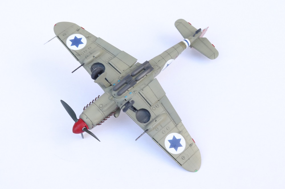 Kamarád mě upozornil, že Izraelské S-199 létaly s 2x SC70 pouze na přední pozici místo 4x SC70. Bylo to z důvodu, že kvůli nízké podvozkové noze se ty zadní pumy nevešly a škrtaly by o zem. Já to už předělávat nebudu, jelikož to mám přilepené vteřinovkou a vypadalo by to hnusně když bych to utrhl.