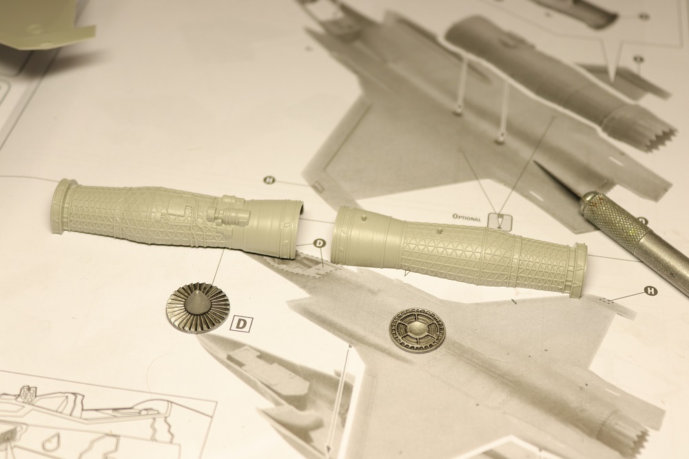Tak čas se krátí a bohužel jsem promarnil několik dní z různých důvodů co tu nemá cenu řešit. Každopádně model se kupodivu lepí dobře. Na celém povrchu je hrozná krupice po vyjiskřování forem. To nejde odstranit úplně kvůli vystupující konstrukci. Pumovnici jsem zavřel, jelikož bych tím ztrácel zbytečně čas a dotyčný by to asi ani nedocenil. Předpokládám, že bych mohl stříkat surfacer zítra pokud se něco nevyvrbí.