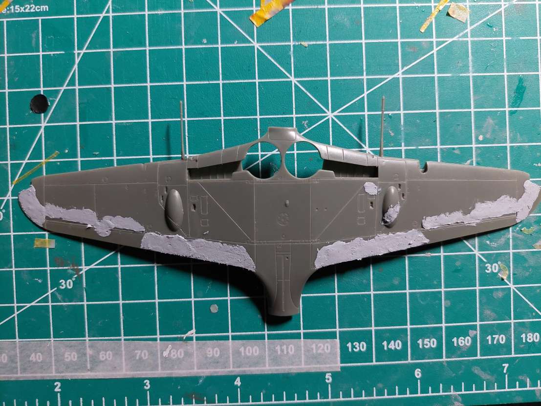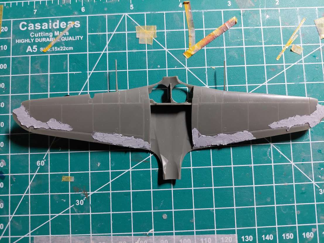 To mi připomíná mojí dvojitou zkušenost s modelem Bf-109A a Bf-109V od Avisu/AML. Tam se taky muselo takhle tmelit. Určitě bych asi tohle nečekal u modelu z dnešní doby. Jednu takovou blbě opravitelnou propadlinu měly klapky na P-51D ve 1/48 od Eduardu.