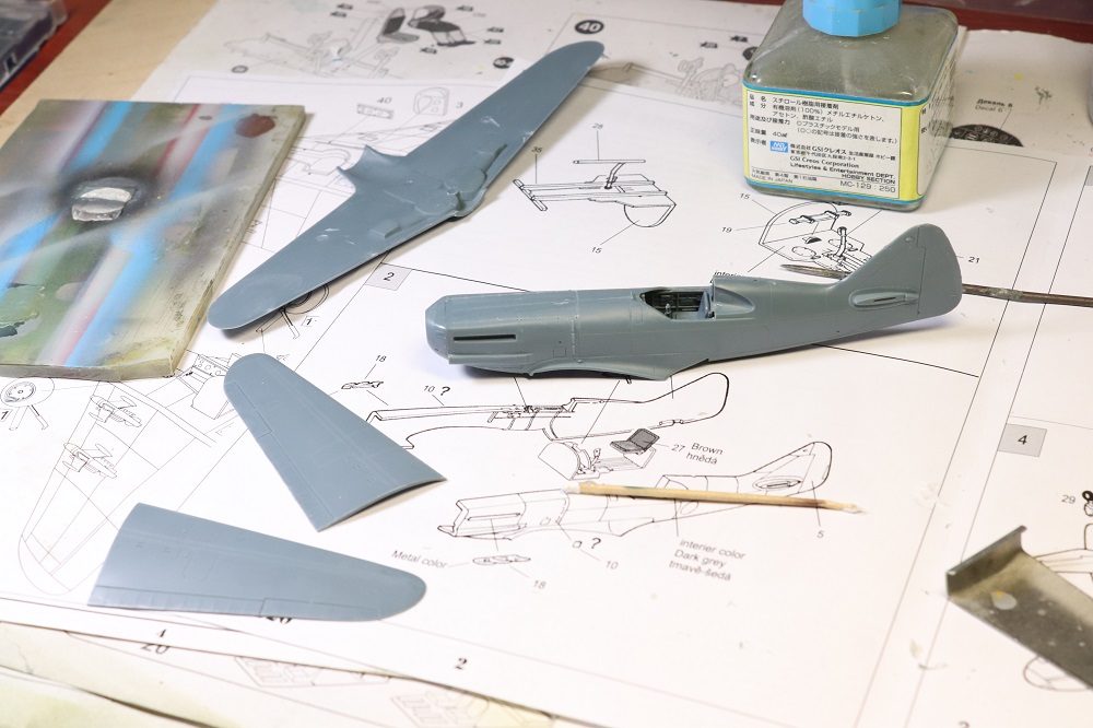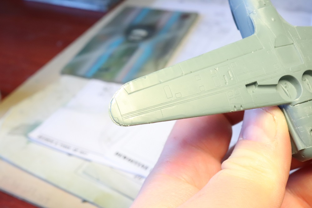 Trup bychom měli vytmelený, vybroušený a rytí obnoveno. Teď mě čeká práce s křídlem. :|
