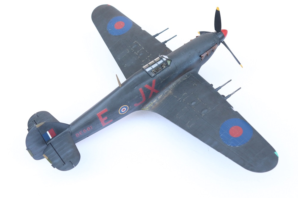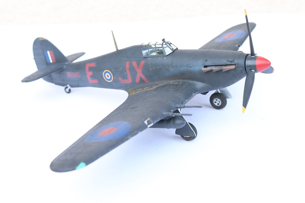 Jedná se o podobu Hurricanu MK.IIc(Long Range) JX-E, BE581, F/Lt. Karla Kuttlewashera, 1. peruť 1942, Tangmere, Anglie. Tento letoun byl osobním strojem se kterým získal většinu svých vítězství i když Kutt létal nebojově i na dalších Hurricanech s označením JX-A, JX-C- JX-D, JX-L. Na letounu letěl nebojově i další čs. pilot Sgt. Zdeněk Bachůrek. Tento letoun má několik podob, ale ve stavebnici je ta nejpozdější. Je zajímavé dle nových fotek z obou stran i potvrzení obou mechaniků, že za celou dobu to byl snad jediný Hurricane u jednotky, který na sobě neměl ani jeden nápis a ani obrázek.(krom sestřelů) Většina Hurricanů v té době mělo na sobě nějaký obrázek nebo nápis. Například letoun používaný F/Lt. J. M. Crabbem JX-U, BE572 měl na sobě obrázek Night Reapera, který byl volnou inspirací pro poválečné a bohužel i mylné interpretace na letounu JX-E.