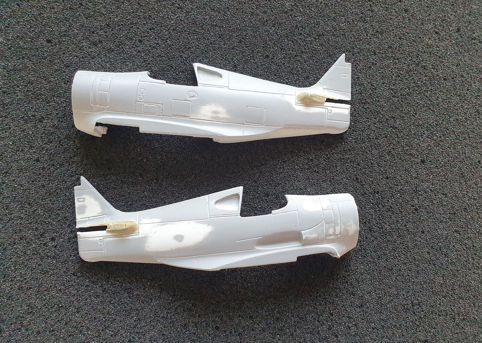 Vrátil jsem se z roboty přes víkend a okoukl v pátek slepený trup, jestli se někde vlivem lepidla nepropadá, přeci je to jen jiný plast. Zatím dobrý, naštěstí centroplán s šachtami na trup pěkně sedl, z toho jsem měl trochu obavy. Ono to půjde. Knížky s obrázky se fakt hodí. :)