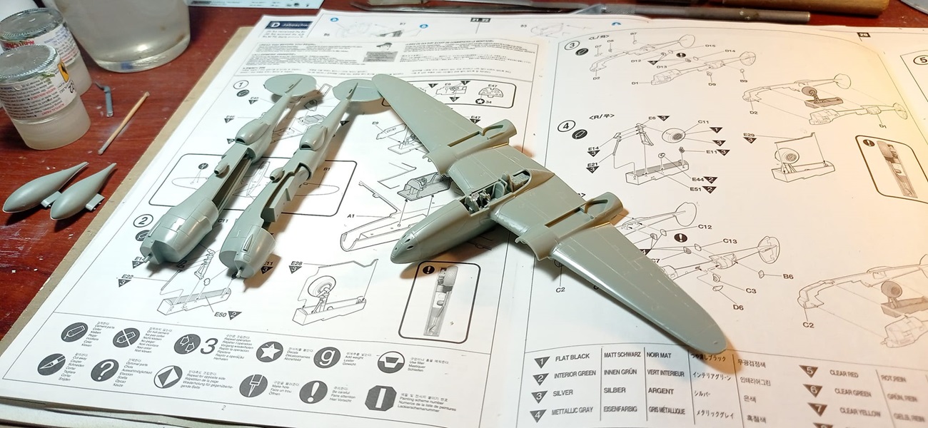 Zatím to mám v kupě. Staví se to pěkně. Tmelil jsem pouze na pár místech drobnosti. Nejvíce asi na trupu v napojení těch dvou půlek trupů. Obnovil jsem rytí. Skřivan posílal fotku na FB jak to stavěl kdysi jako svůj první stříkaný model, tak mě trochu nabudil.