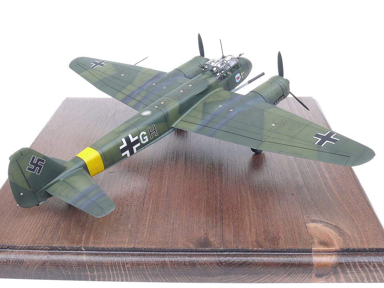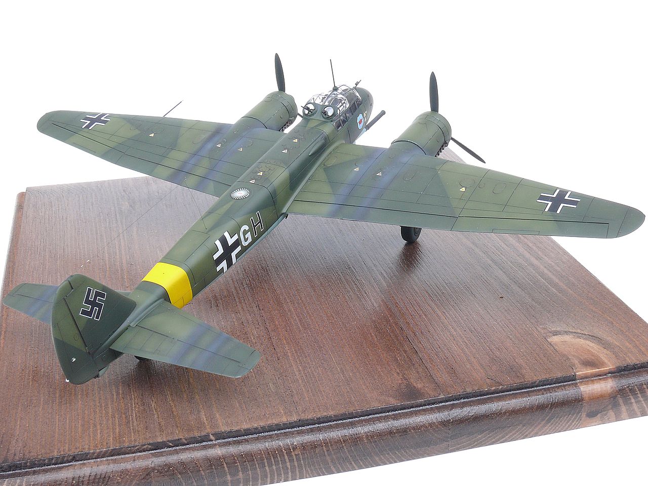 Konverze AIMS na verzi P1 aplikovaná na klik klak model Ju 88 C od HB v 1/72. Doplněny jsou od AIMS ještě nové motory, vše je přeryté, protože rytí tam prakticky nebylo, kompletně nový interiér v mezích možností klik klak modelu za použití leptů Eduard, odlitků CMK. Dalšími doplňky jsou kola a zbraně od Eduard a z Hasegawy je použitá směrovka, nové kovové vrtule a kužel.