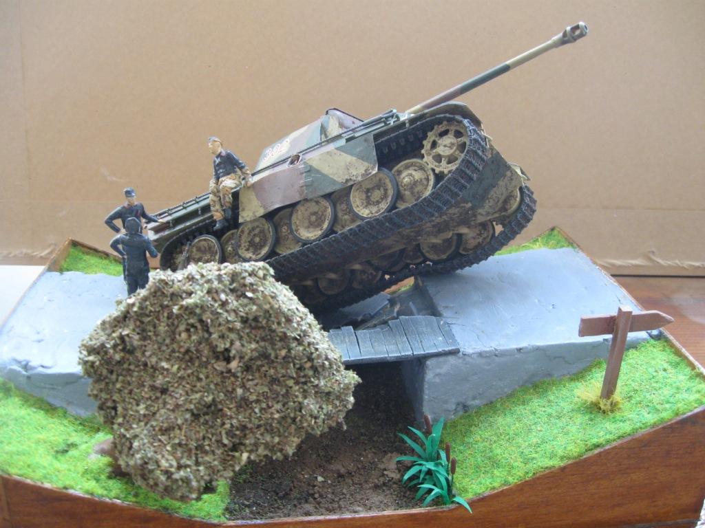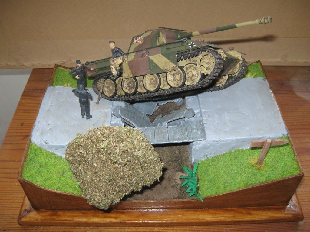 Připadá mi, že je Panther ze tří čtvrtin nad mostkem a vtom případě by se převážil asi zpět na pásy. Možná je to ale fotkou. Jak psal kolega Markus, pokud by most nevydržel váhu tanku, tak ten by se nejspíš propadl předkem a opřel laufem o vozovku.