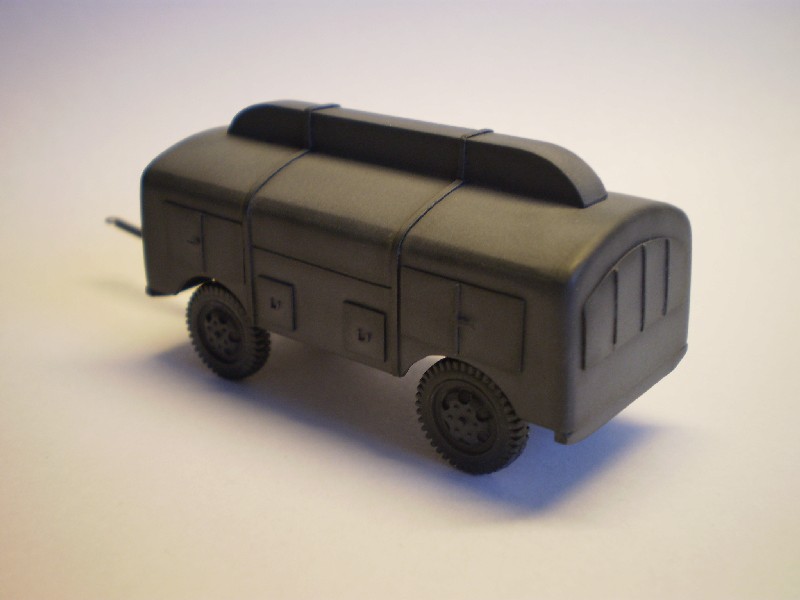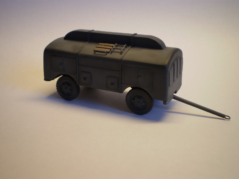 Po ročnej pauze som dokončil skreč nemeckého cisternového prívesu Flugbetriebsstoffkesselwagenanhänger (Anh. B 2/1). Kolesá sú z Opel Blitz Esci, ostatné je vlastná výroba.