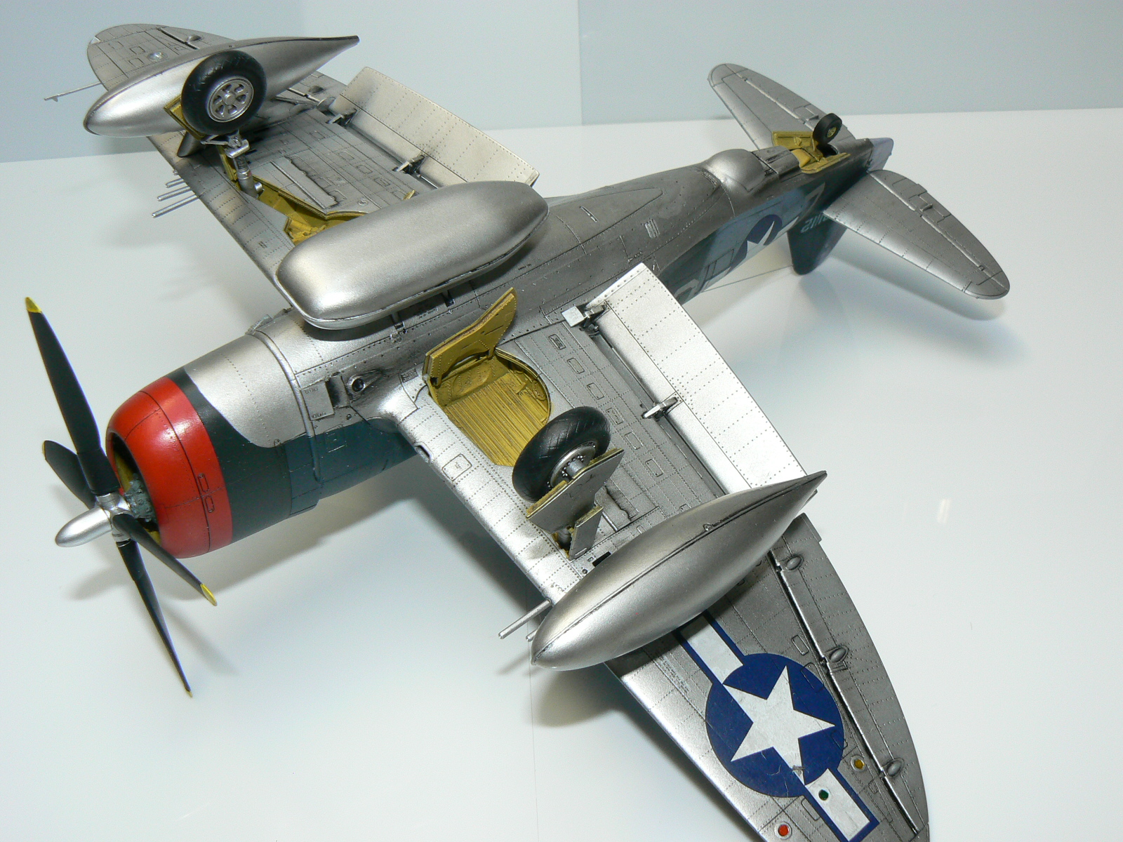 Ještě nevím jestli budu měnit přídavné nádrže za bomby a tak ta nemám držáčky a oku znalce jistě neunikne nedobarvený píst hydrauliky na podvozkovém krytu.